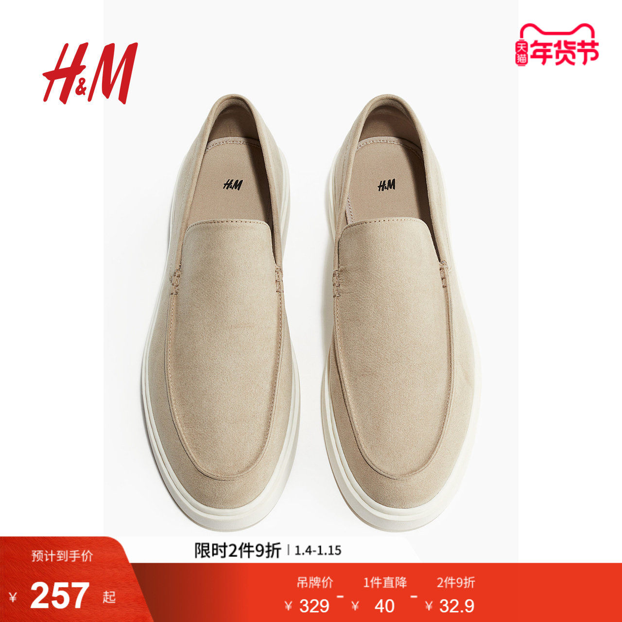 HM男士乐福鞋冬季时尚舒适潮流莫卡辛缝线豆豆鞋1265702
