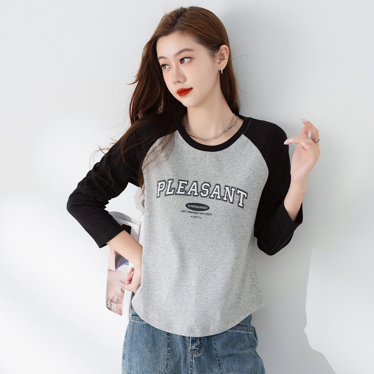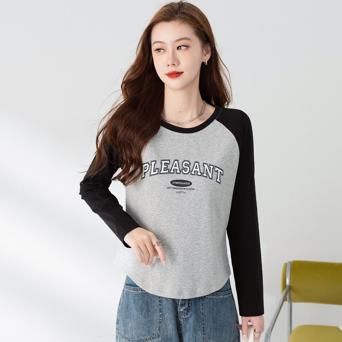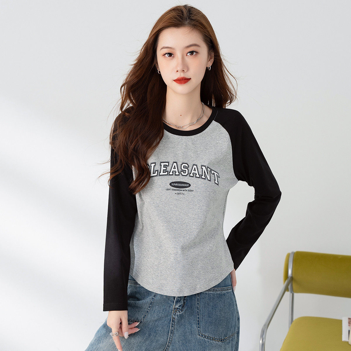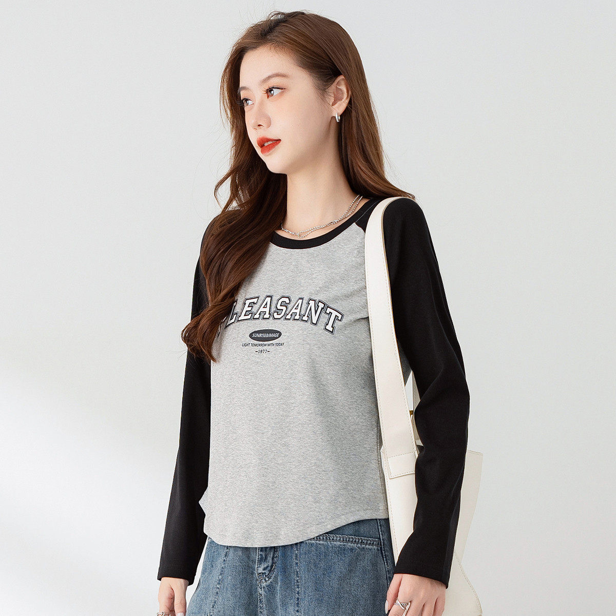 班尼路秋季款印花插肩袖长袖T恤女修身显高休闲保暖磨毛和基本款J