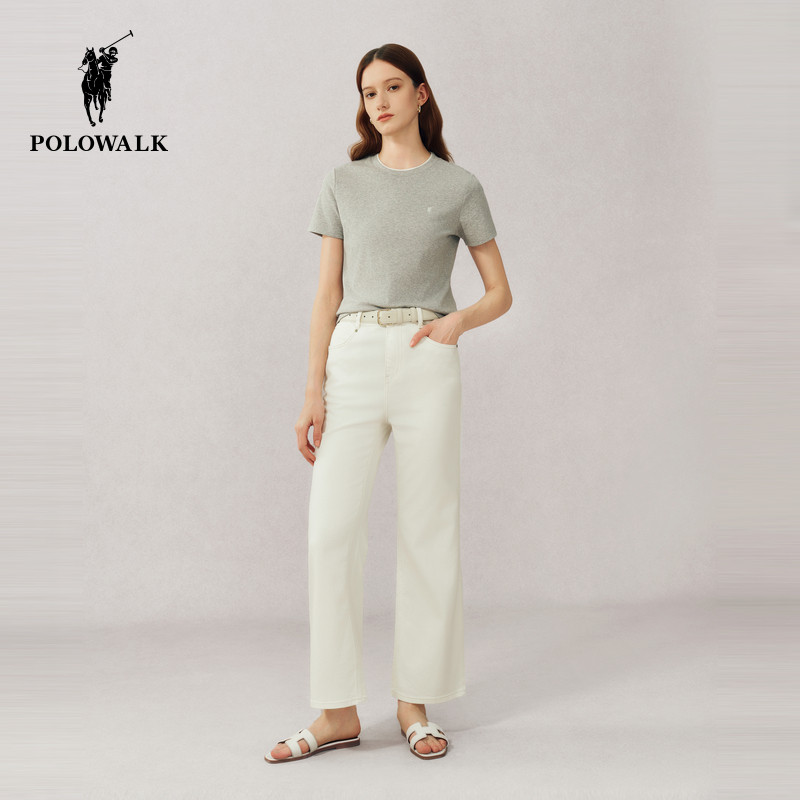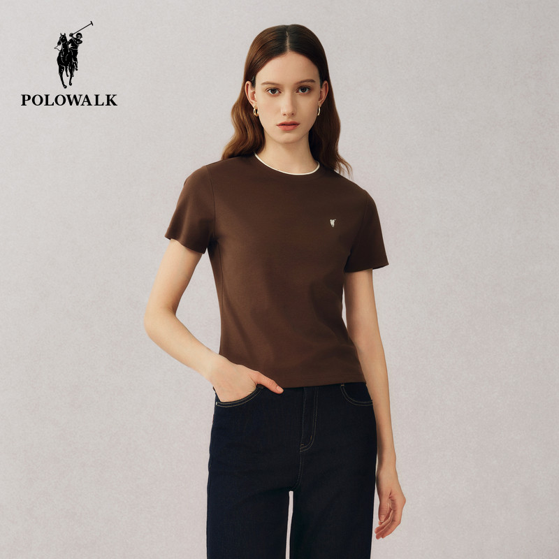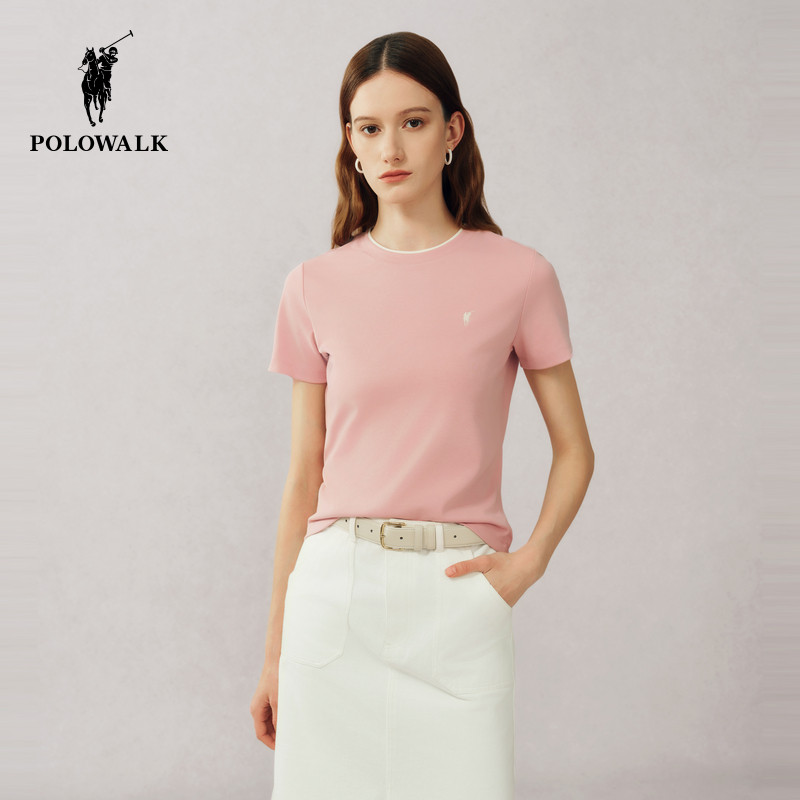 POLOWALK短袖圆领T恤女士2026夏季新款时尚休闲修身纯色打底t恤女
