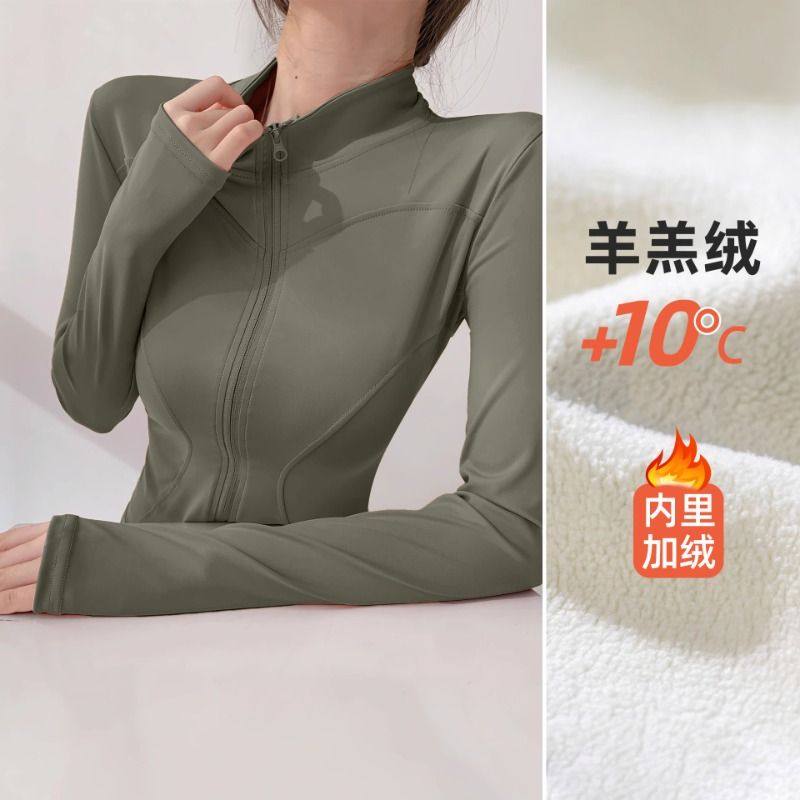 加绒加厚瑜伽服女秋冬2025新款修身运动外套长袖拉链保暖上衣健身
