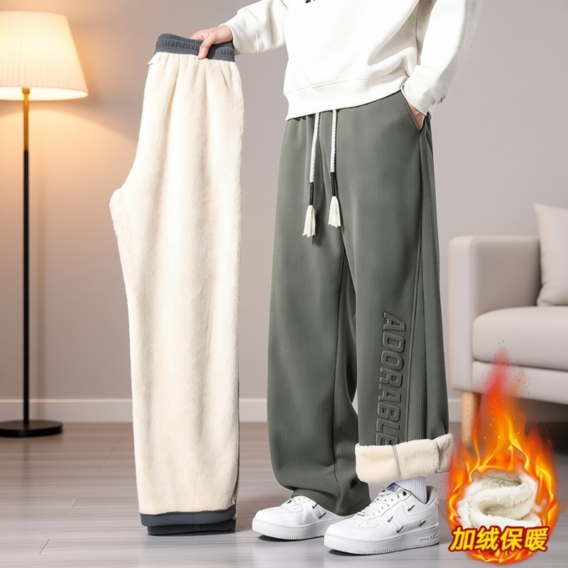 羊羔绒裤子男士冬季保暖加绒加厚棉裤宽松青少年冬装运动休闲长裤