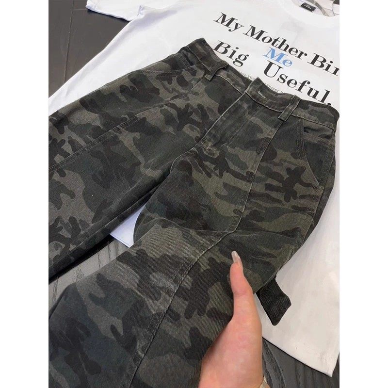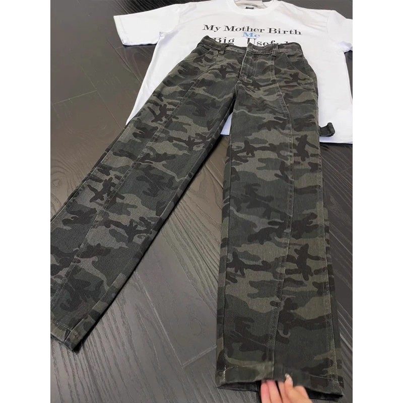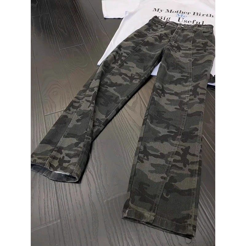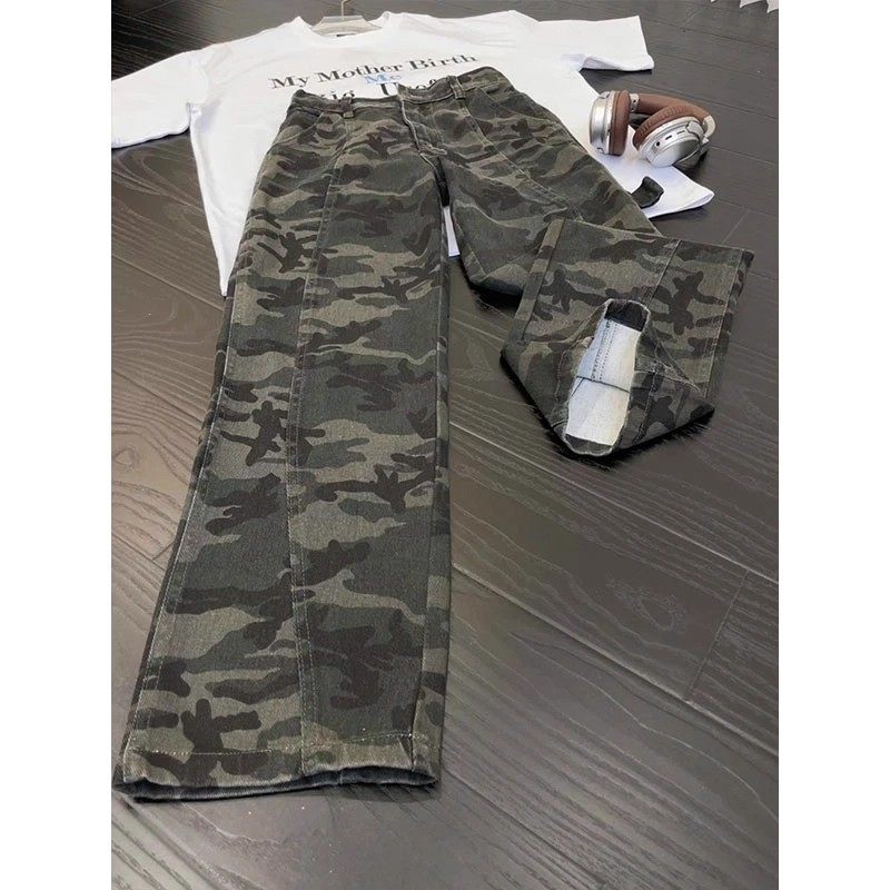 迷彩弯刀裤子加绒牛仔裤男款青少年户外休闲伐木工装高级感直筒裤