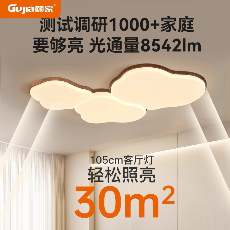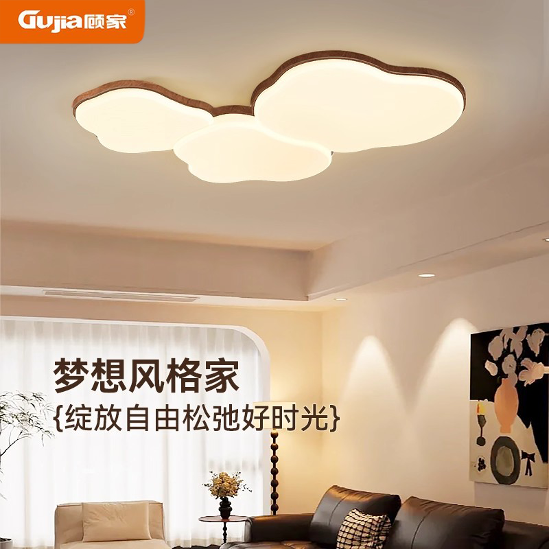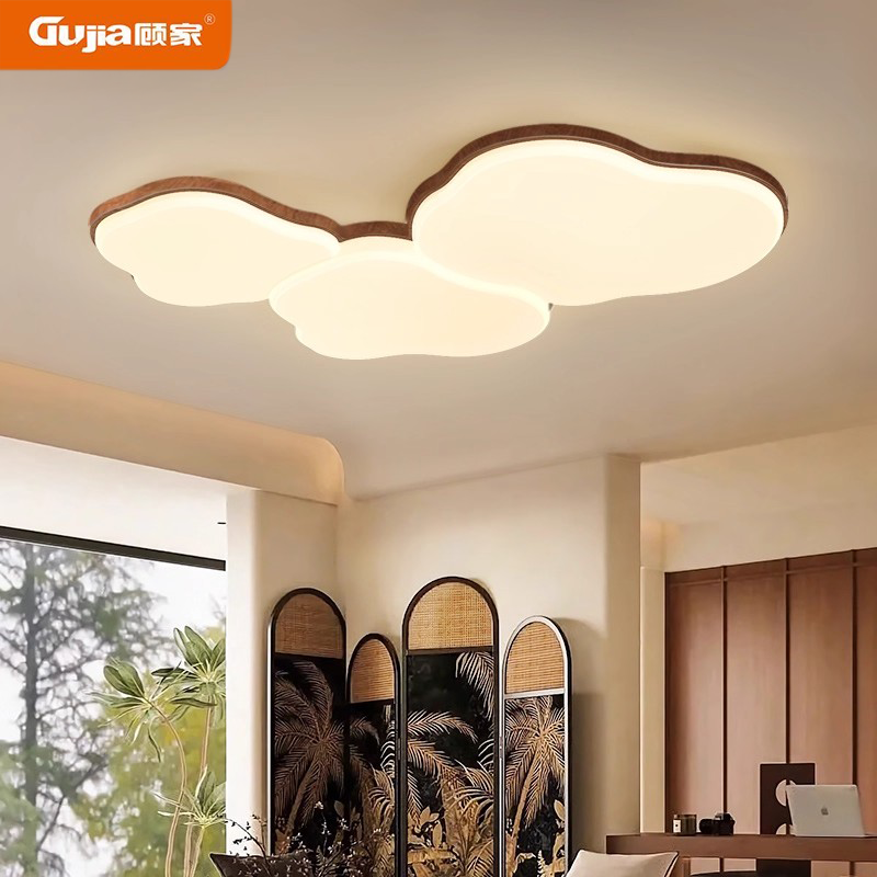 顾家中古风客厅灯云朵灯胡桃木色吸顶灯原木风卧室灯具2025年新款