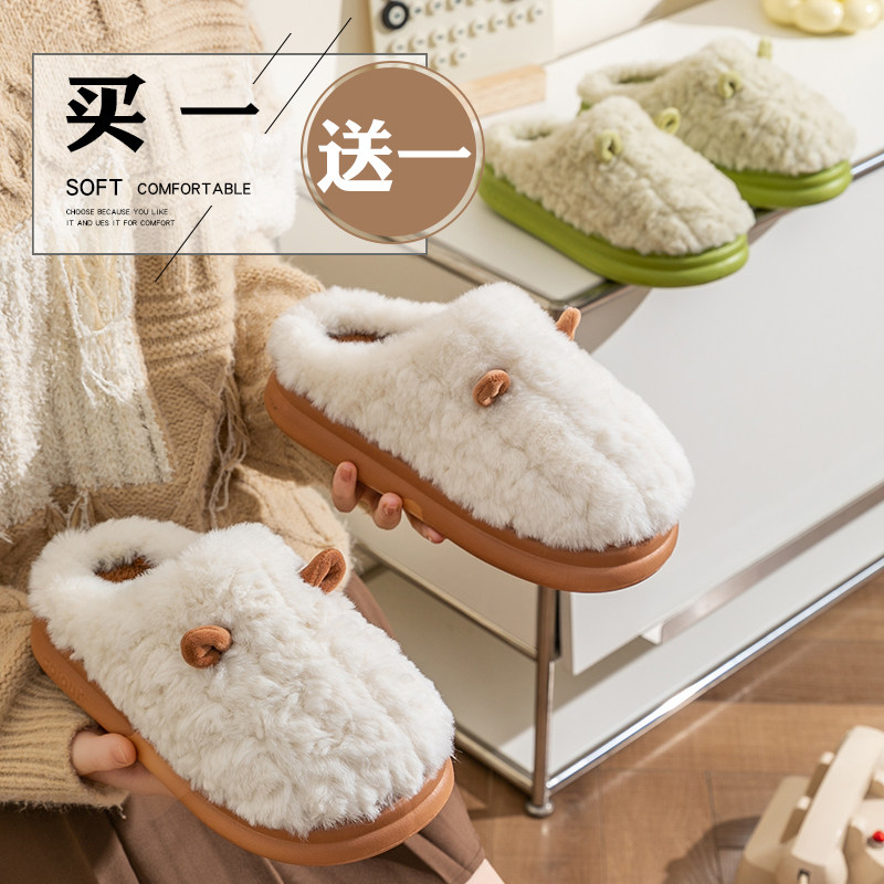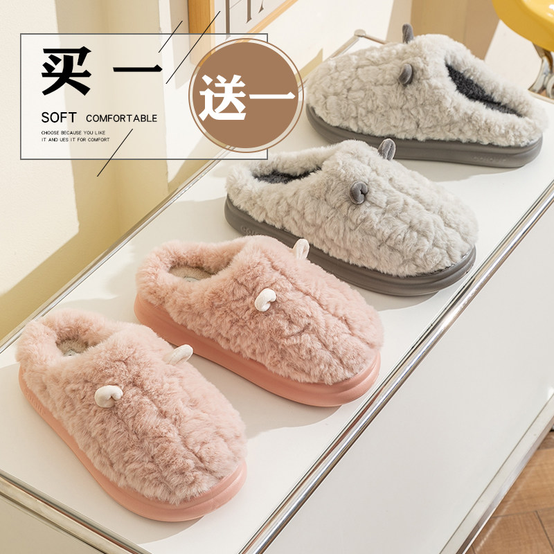 棉拖鞋家居室内女士防滑买一送一冬季一对保暖情侣厚底毛绒棉拖男