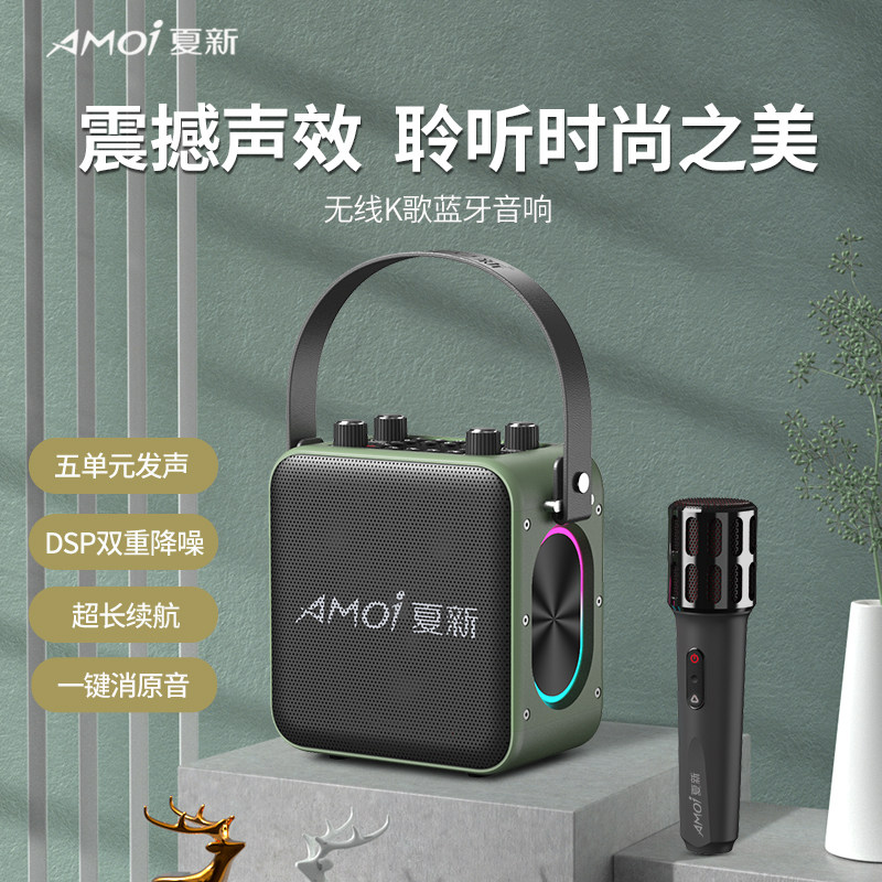 夏新A76新款便携K歌音响带话筒户外广场舞大音量无线蓝牙小型音箱