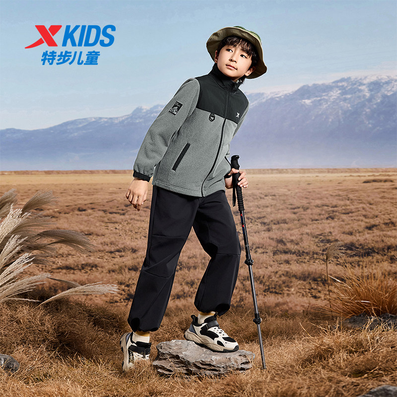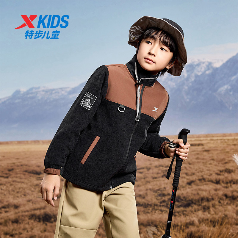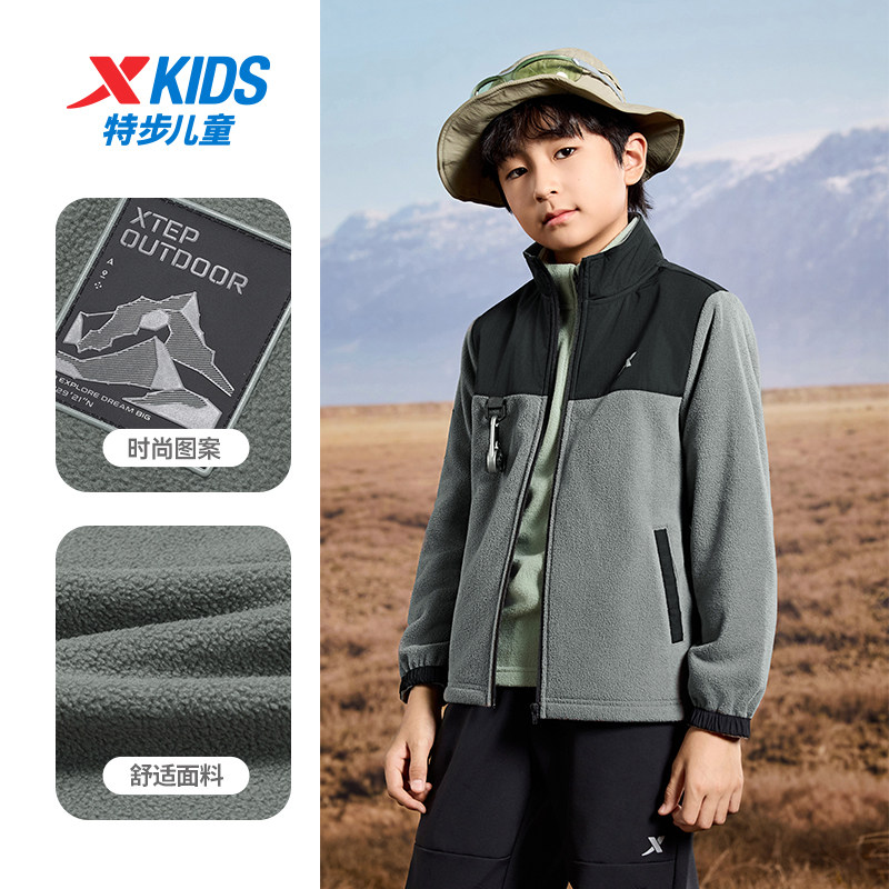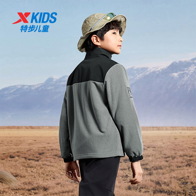 特步童装秋季新款男童女童中大童摇粒绒外套运动休闲加绒针织上衣
