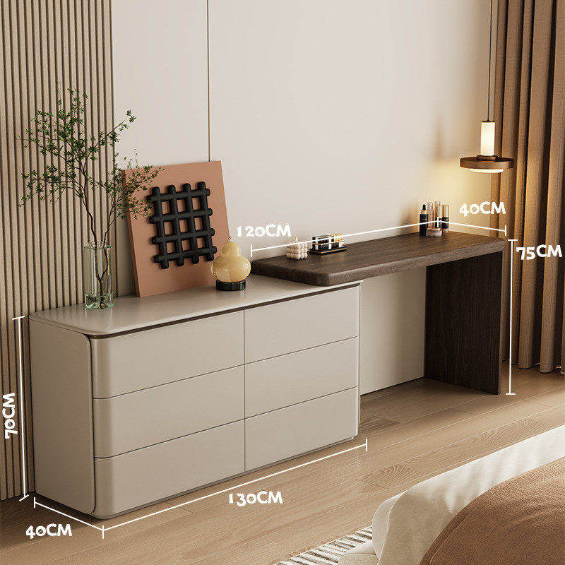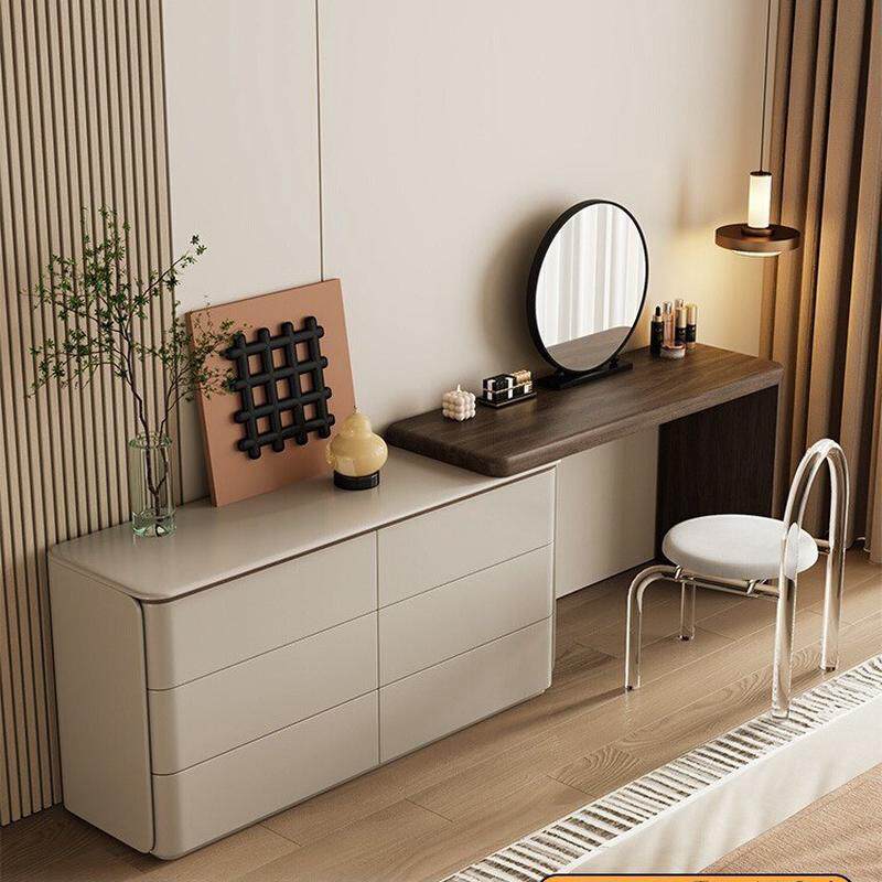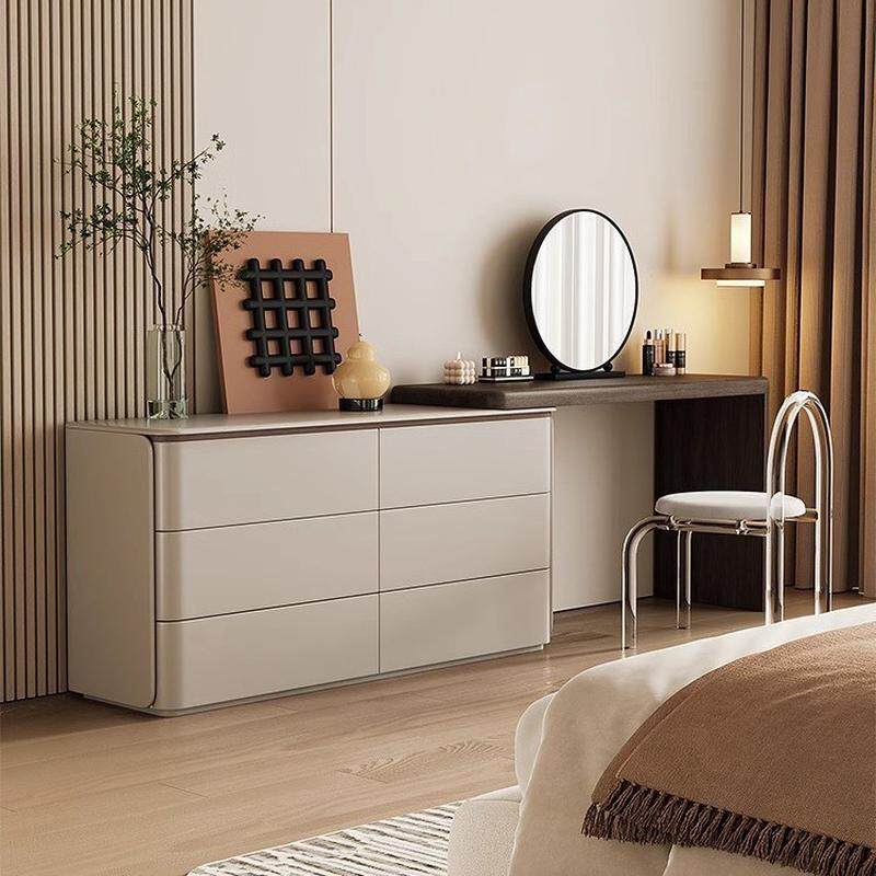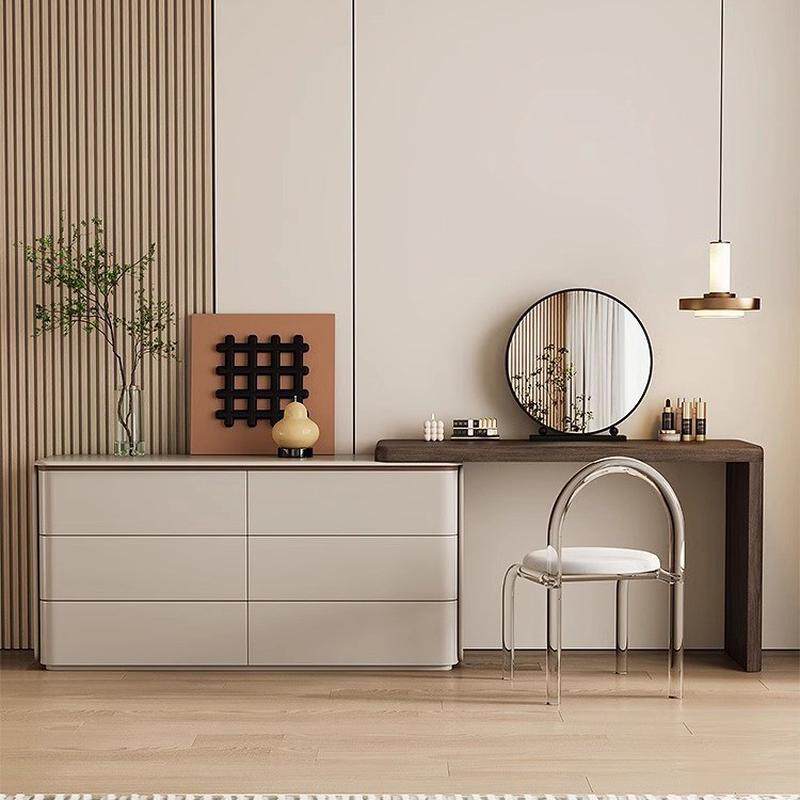 梳妆台收纳柜一体卧室侘寂奶油简约床尾斗柜可伸缩化妆桌实木风