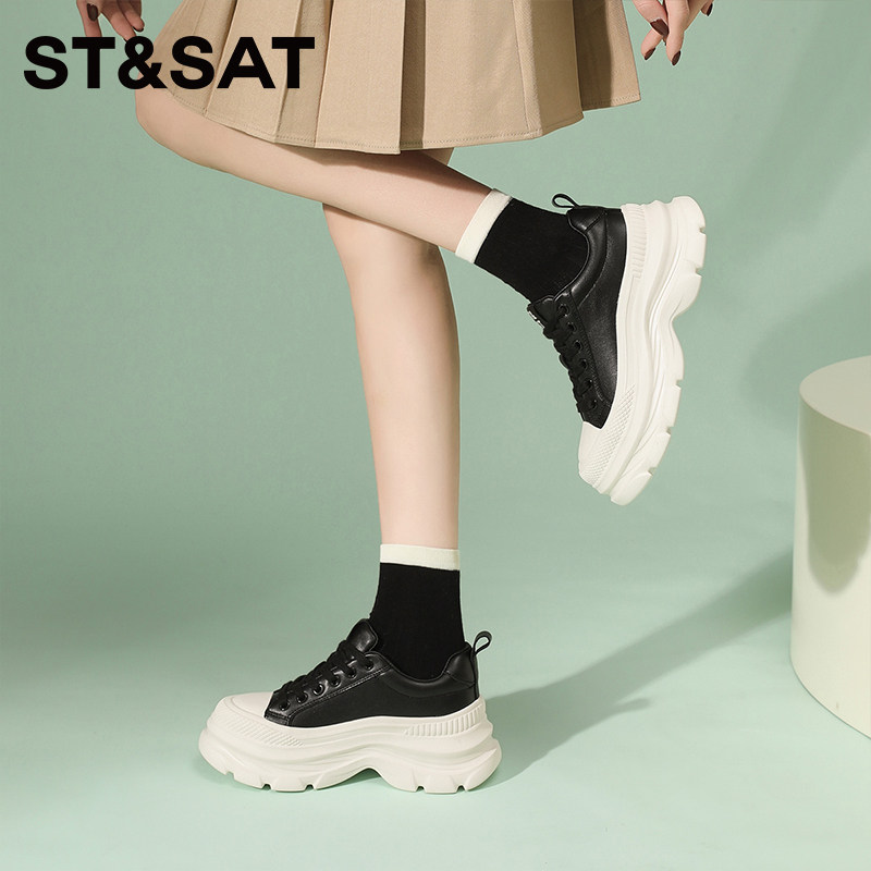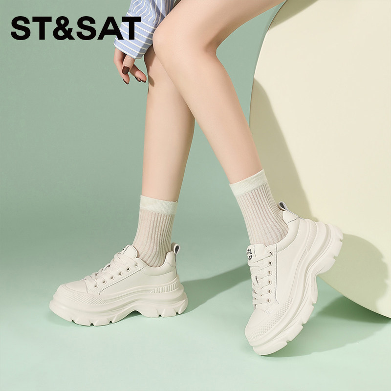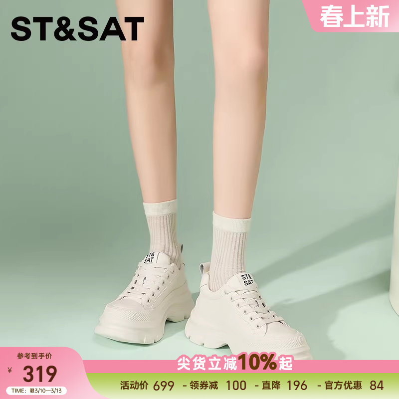星期六新款增高耐磨厚底小白鞋女鞋松糕时尚休闲鞋系带运动鞋百搭