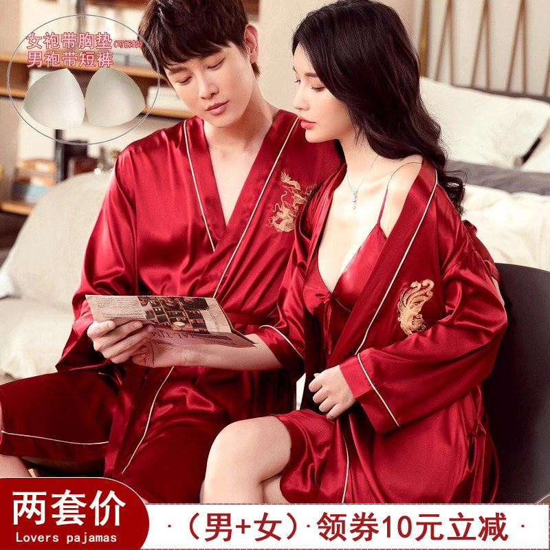 情侣睡衣女睡裙冰丝刺绣高级感丝绸浴袍春秋季睡袍男士夏天家居服
