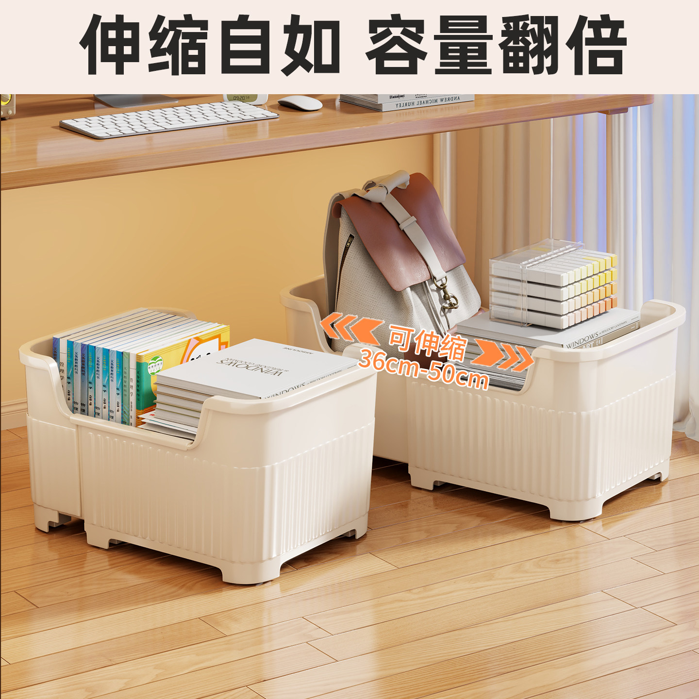 书本收纳箱书箱书桌下带滑轮整理神器学生教室大容量可移动置物架