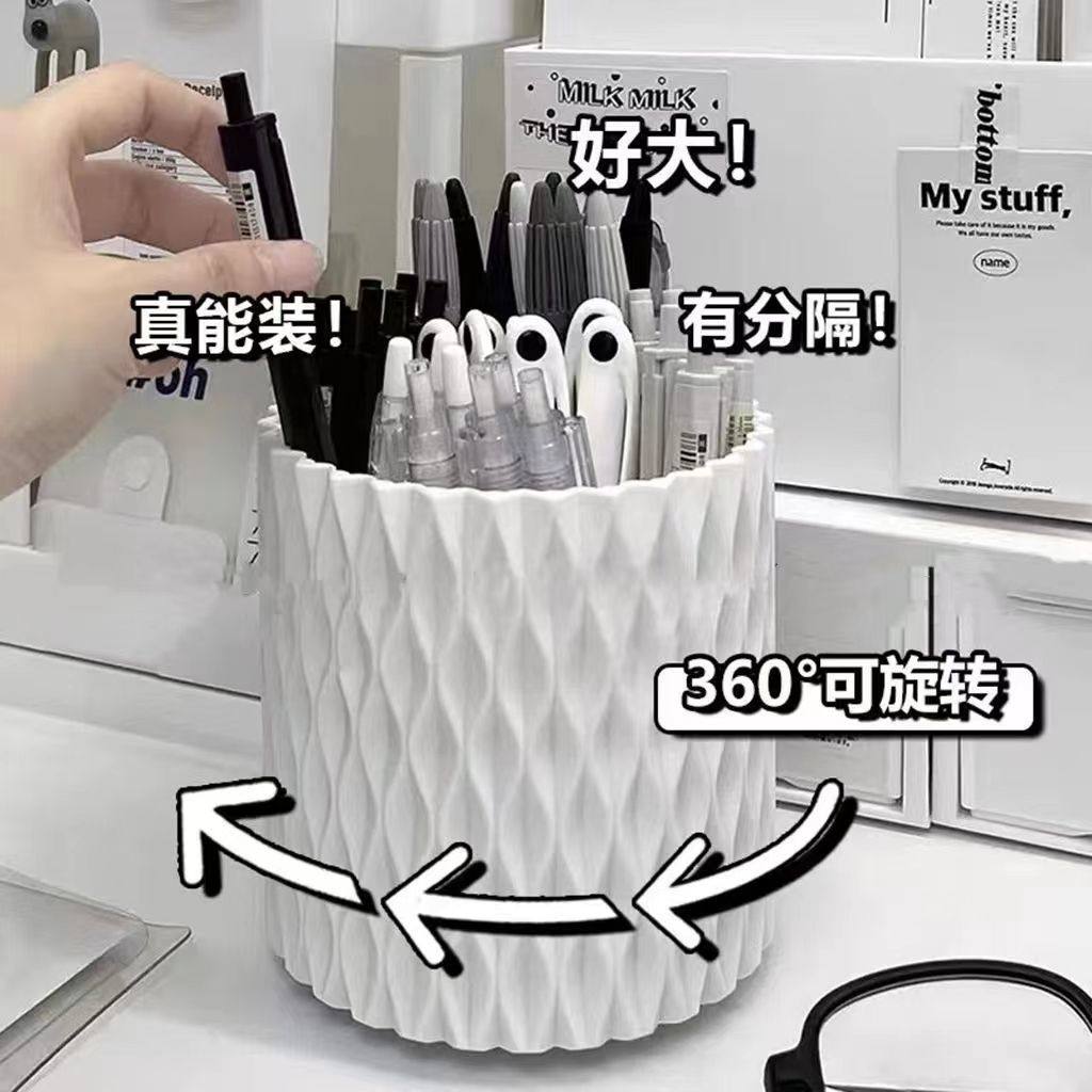 笔筒2026热卖旋转笔筒办公室桌面收纳盒男女孩轻奢风大容量笔桶