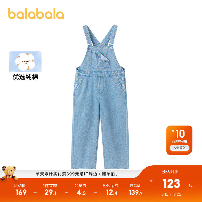巴拉巴拉童装女童牛仔裤儿童24新款春大童长裤背带裤