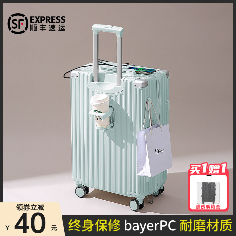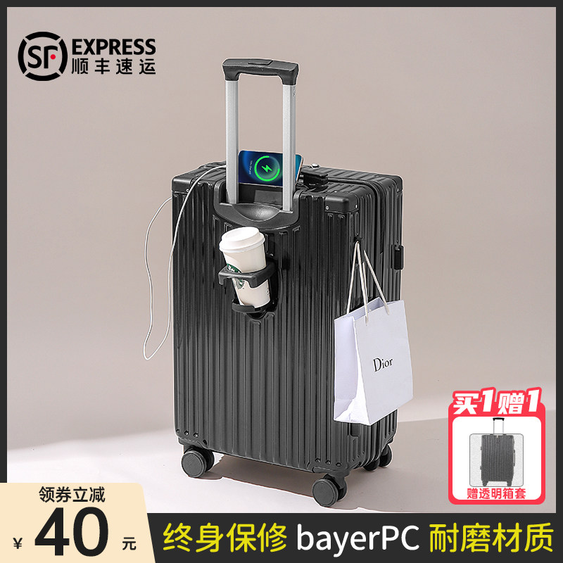 多功能行李箱充电口杯架前置挂钩静音万向轮
