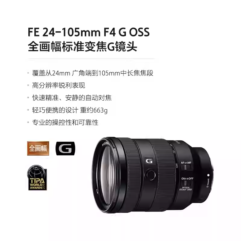 Sony/索尼 FE 24-105mm F4 G OSS 全画幅标准变焦G镜头SEL24105G