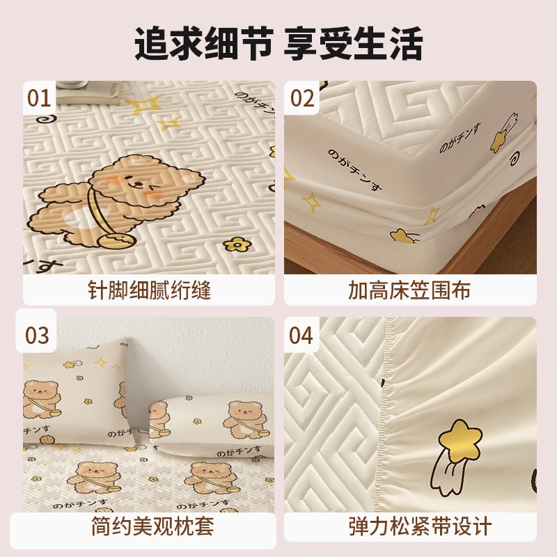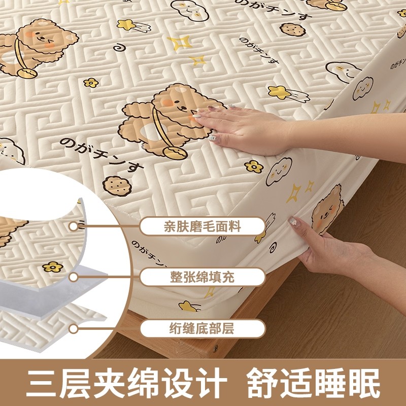 2025新款学生宿舍单人水洗棉夹棉床笠单件床垫保护罩套床单三件套