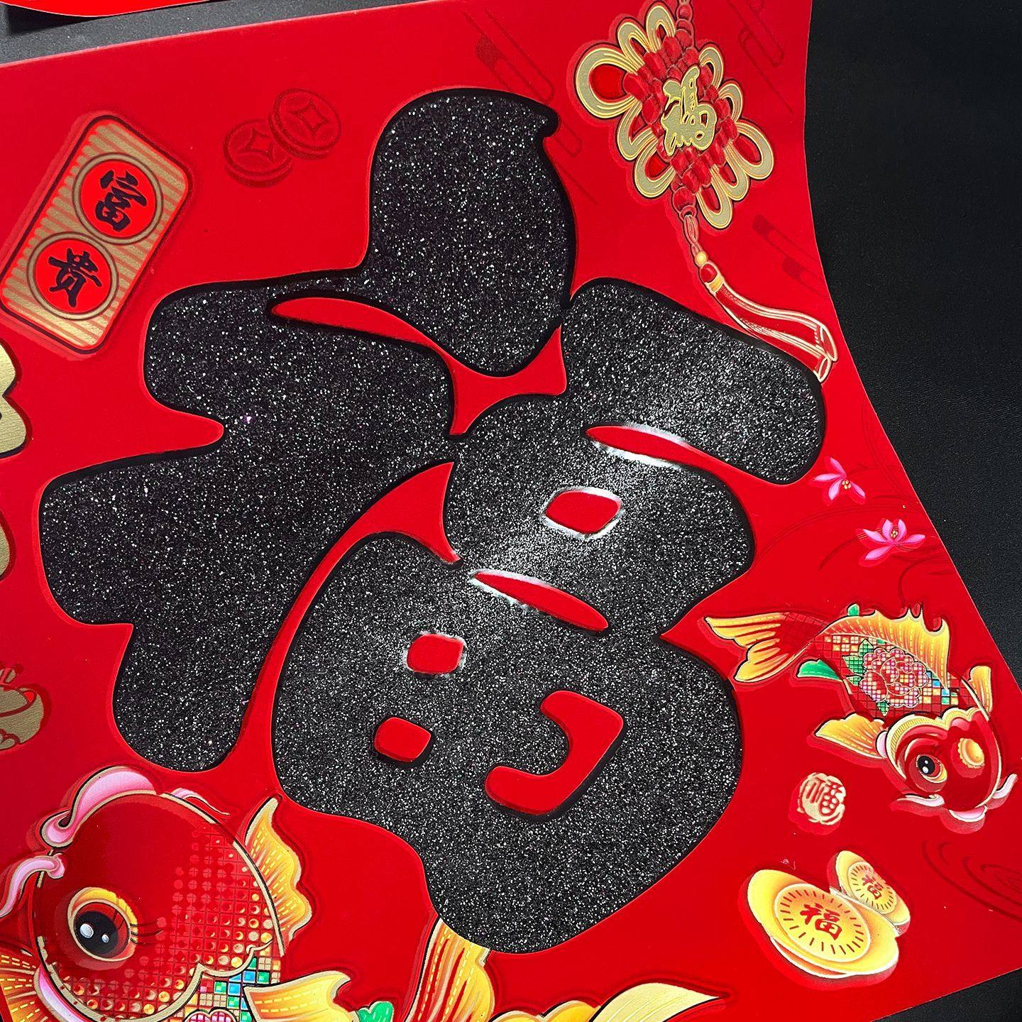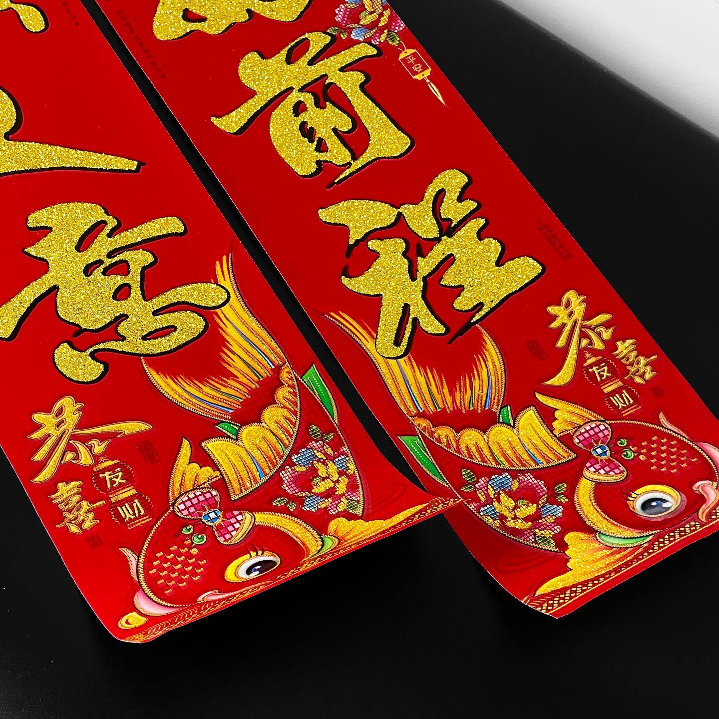 2026春节植绒金粉对联纸福字贴新年装饰用品传统节庆门贴礼盒装高端铜版纸福联红色节日马年新潮中国风传统款