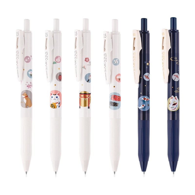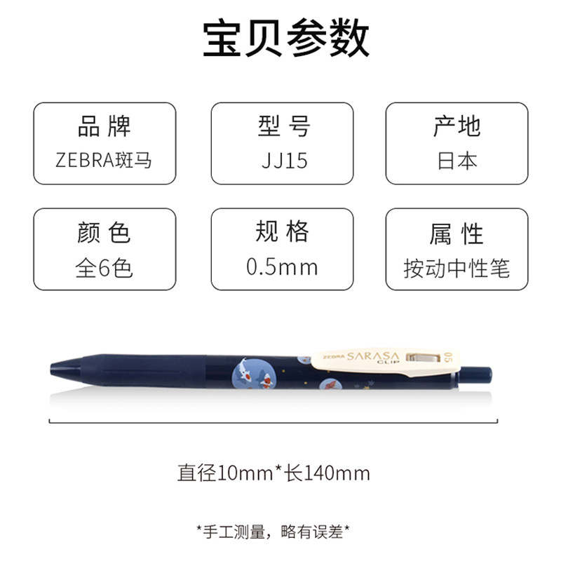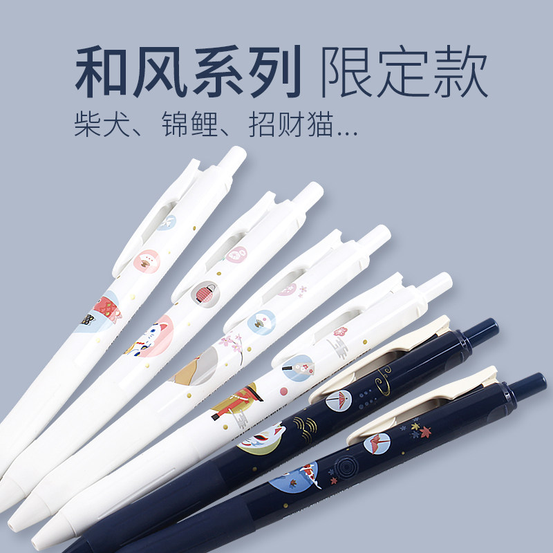 日本ZEBRA斑马JJ15和风限定款中性笔SARASA按动水笔0.5mm学生考试黑笔日系插画锦鲤柴犬风筝鸟居狐狸猫咪图腾