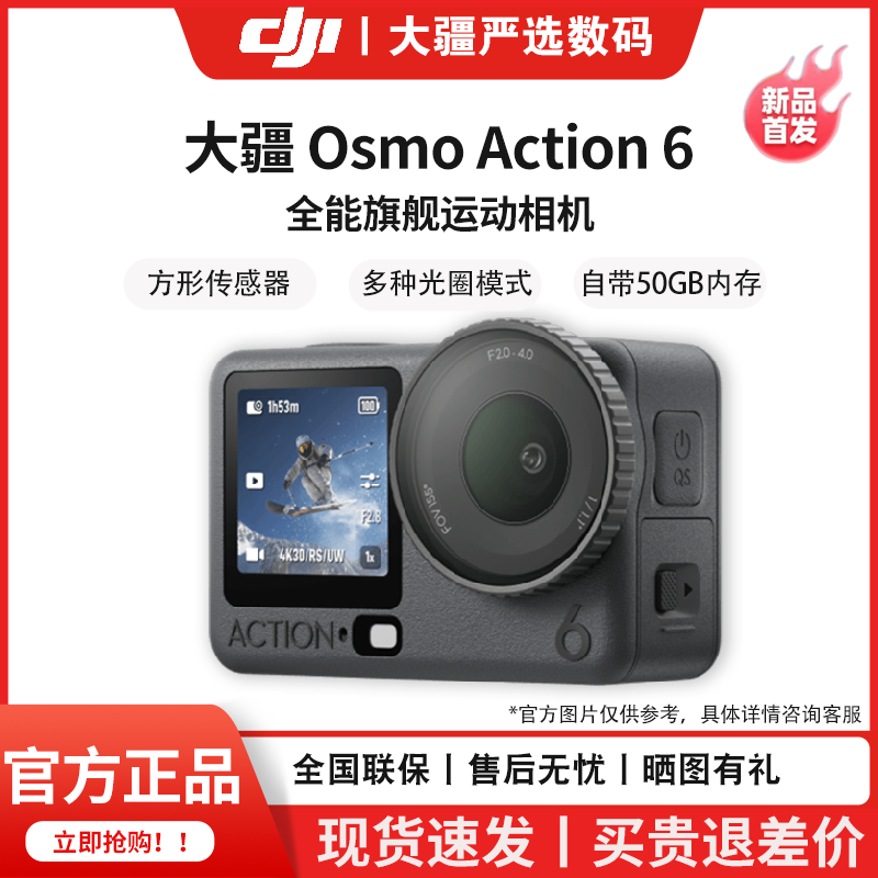 DJI/大疆 Action6全能旗舰运动相机 可变光圈手持Vlog徒步滑雪