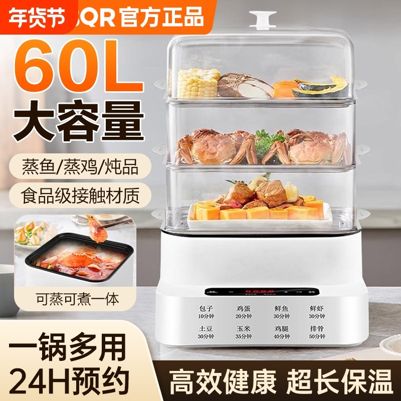 SUOBQR电蒸锅多功能大容量蒸煮一体机电火锅三层不锈钢全自动蒸菜