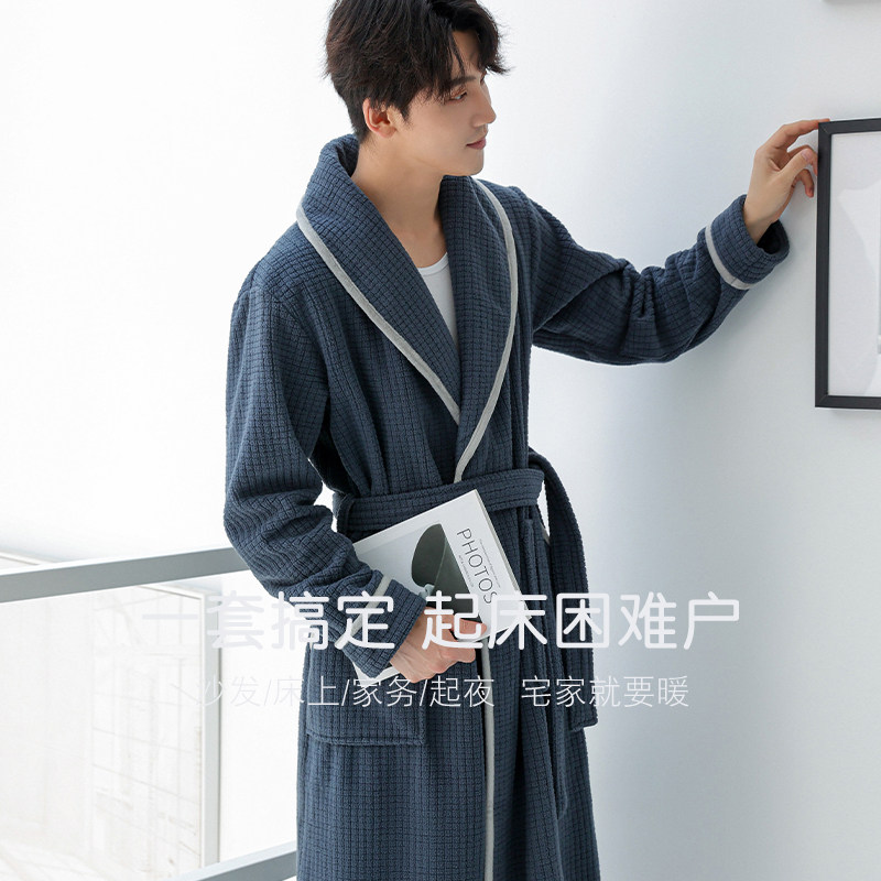 加厚加绒睡袍男冬季新款2025珊瑚绒保暖睡衣男士长款浴袍秋冬浴衣