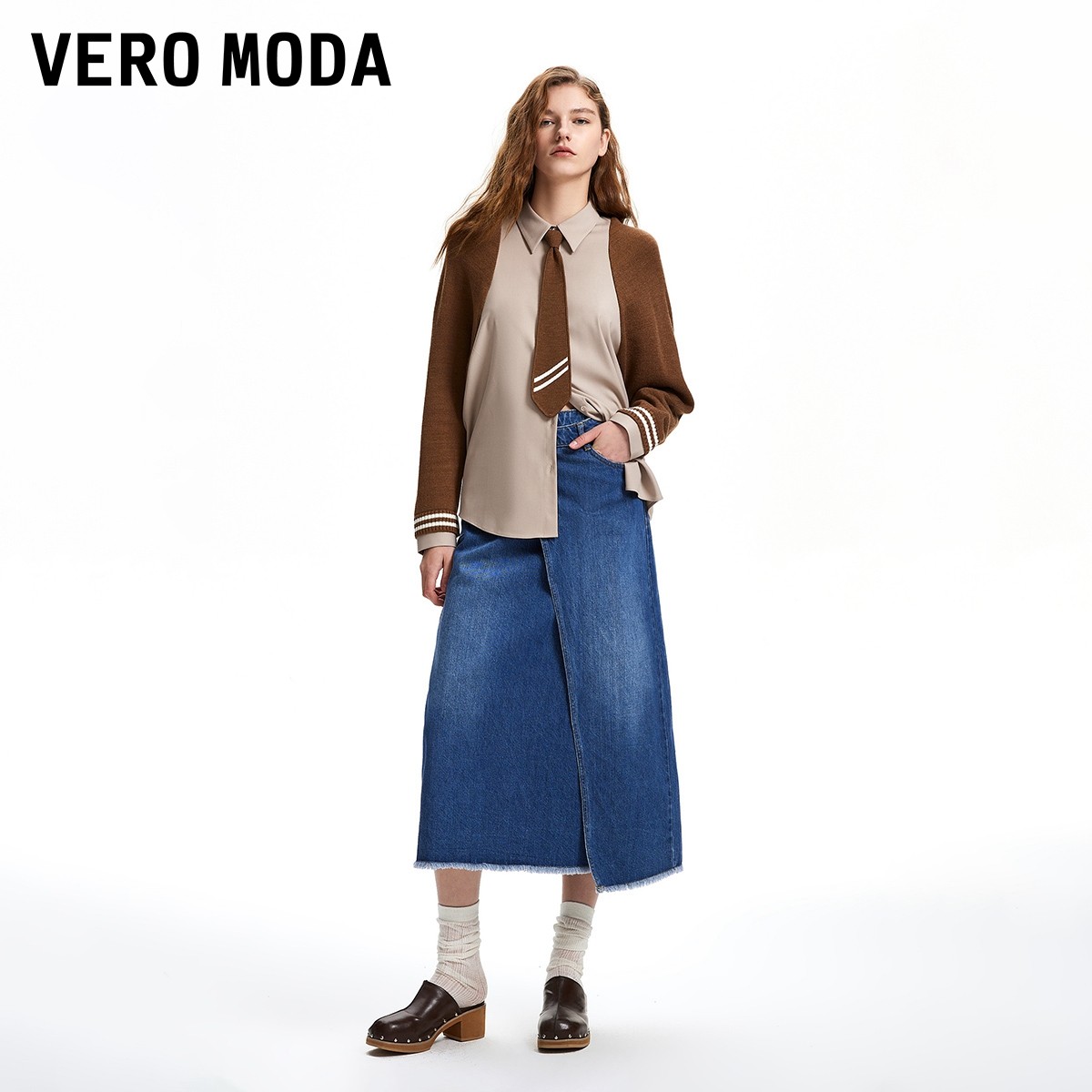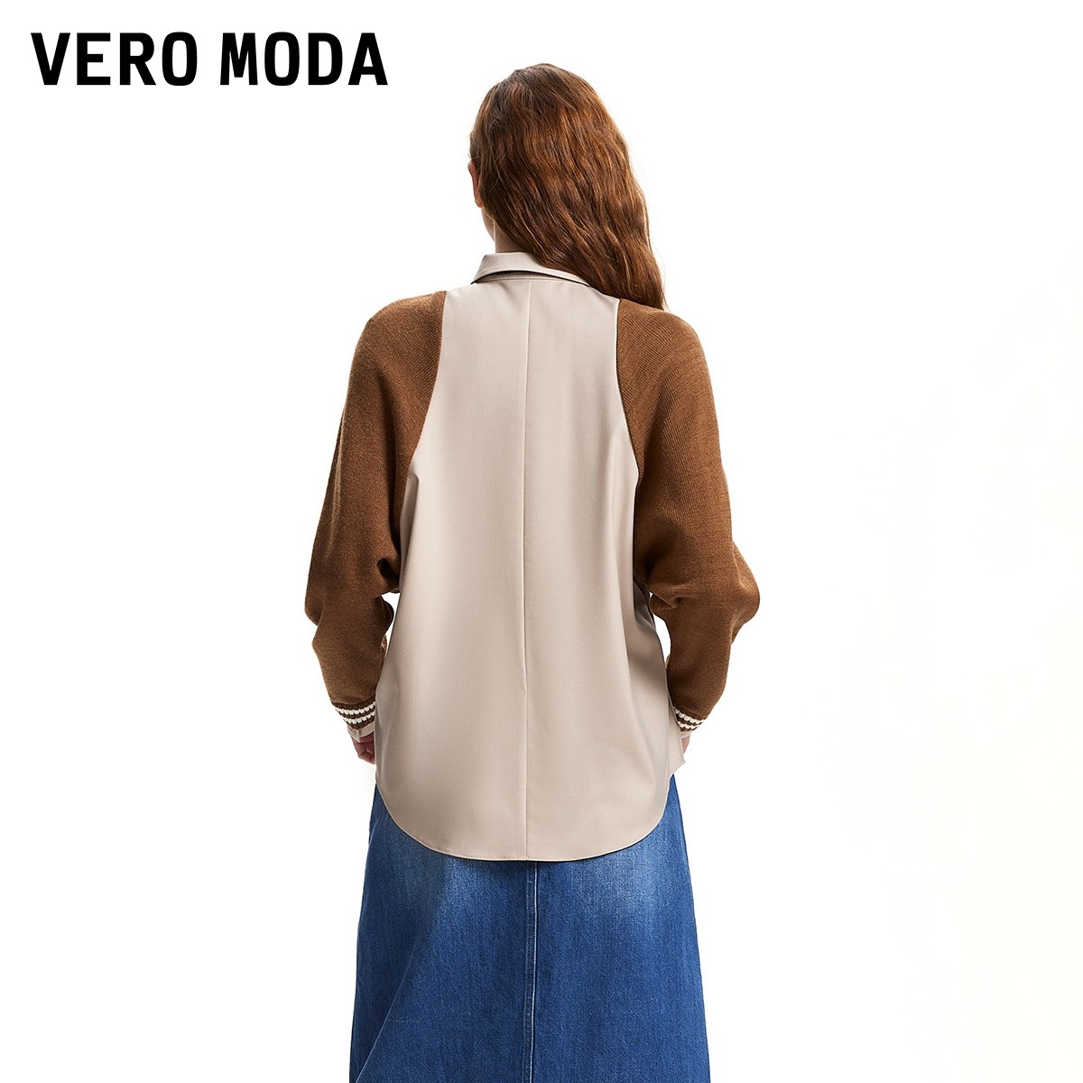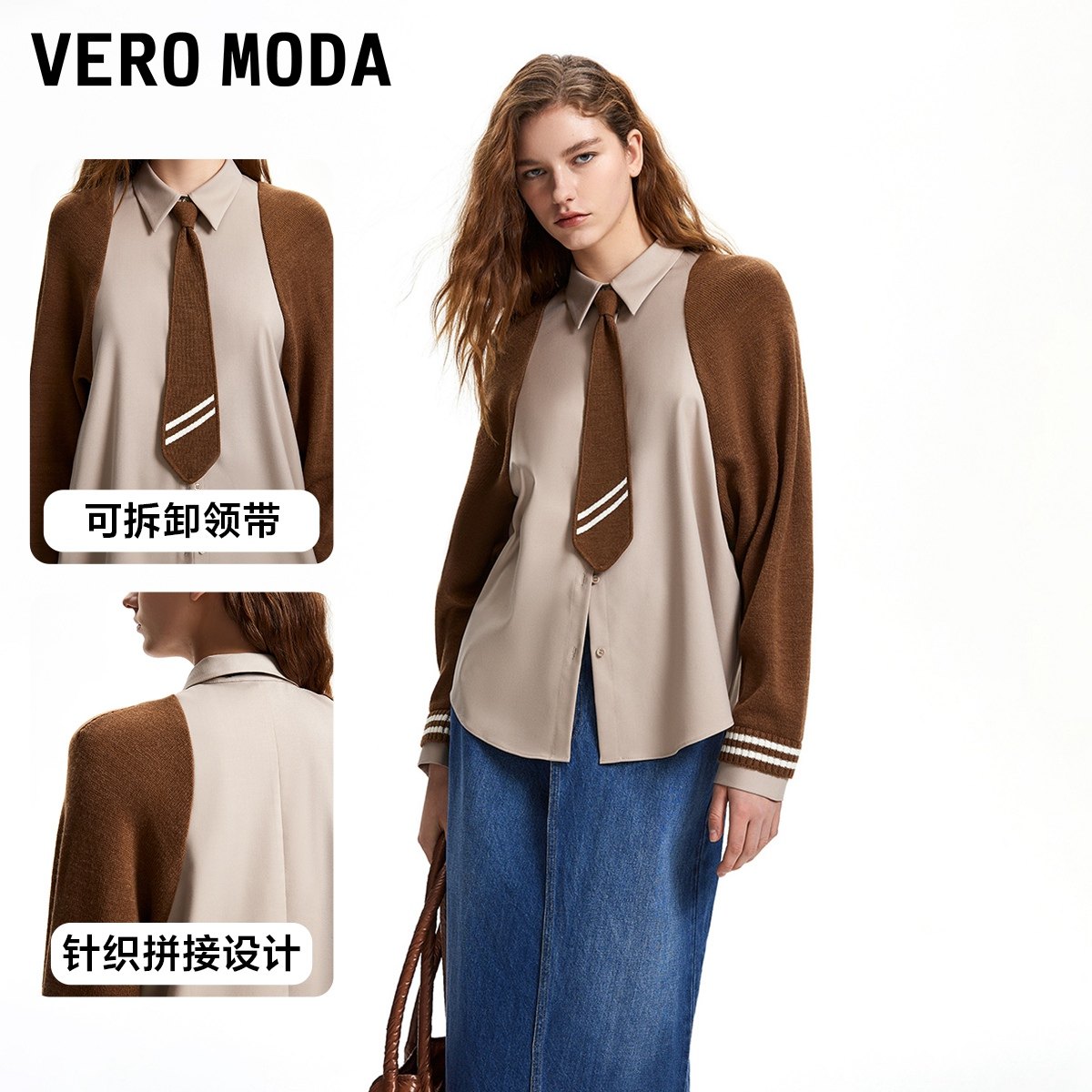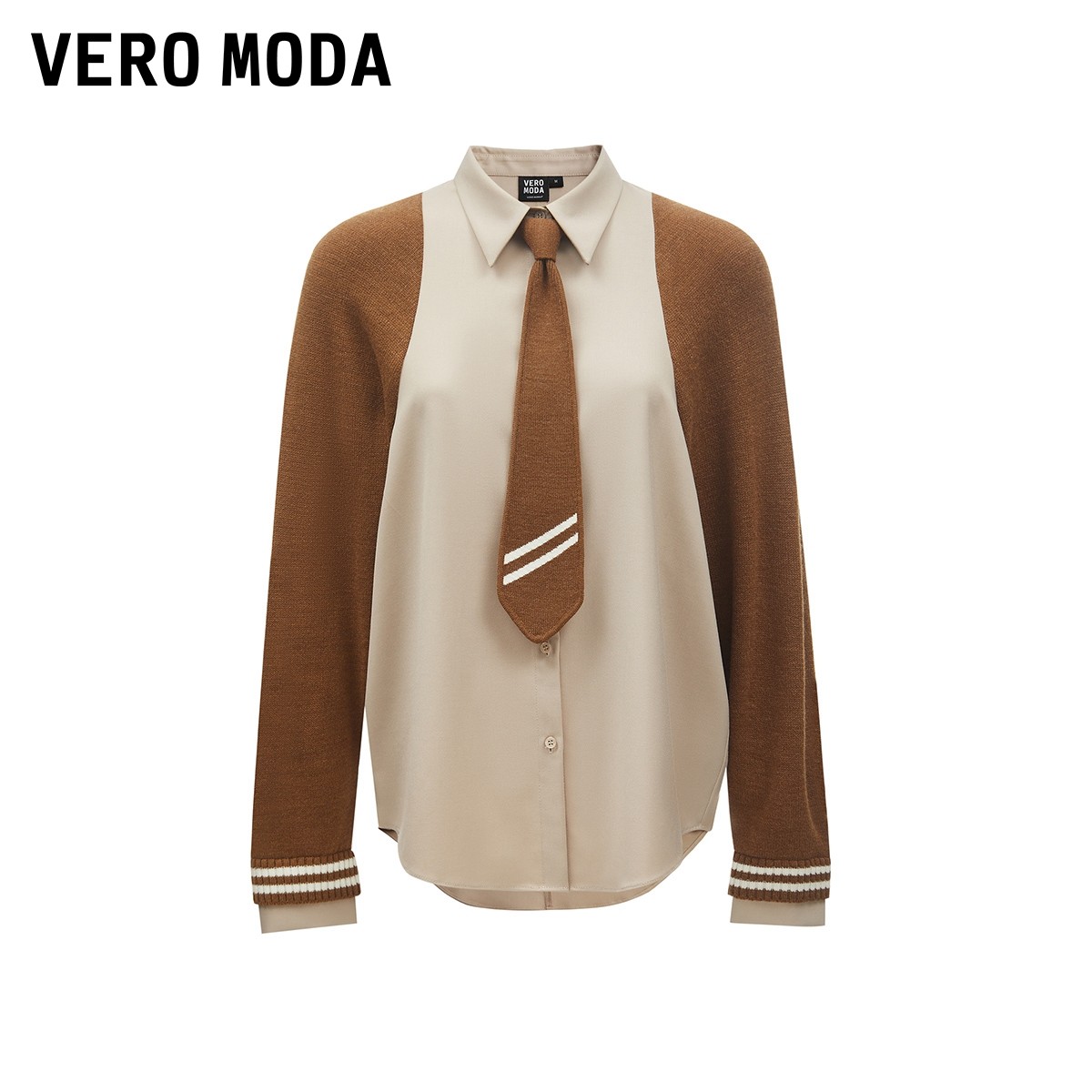 Vero Moda奥莱衬衫女秋季新款休闲舒适学院风可拆领带拼接流行