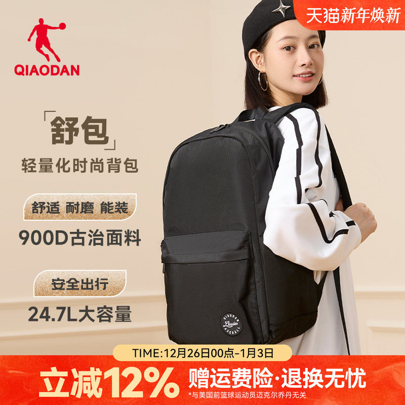 乔丹舒包休闲双肩包男女同款2025四季新款通勤学生大容量电脑书包