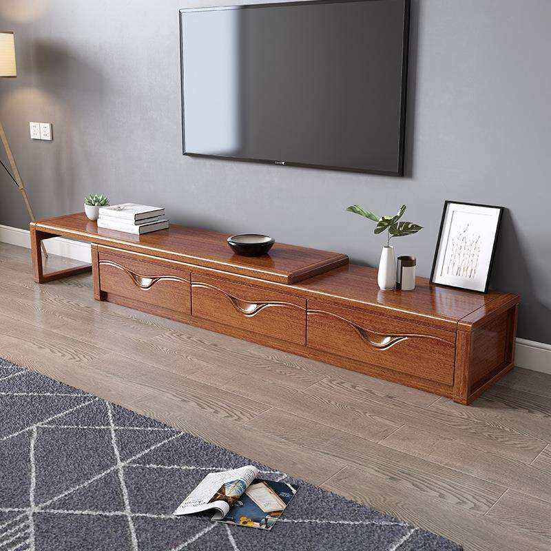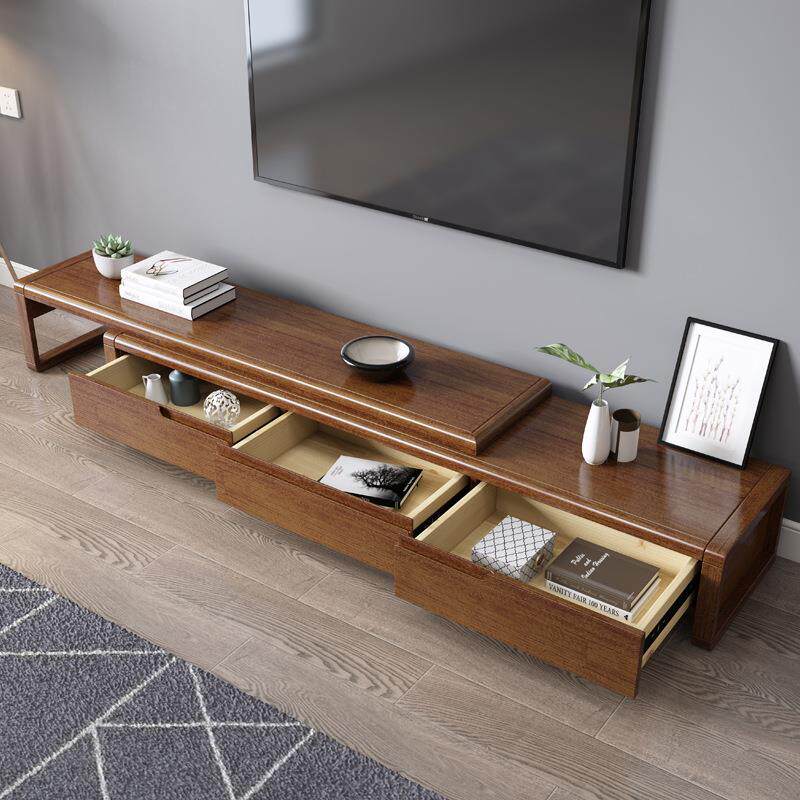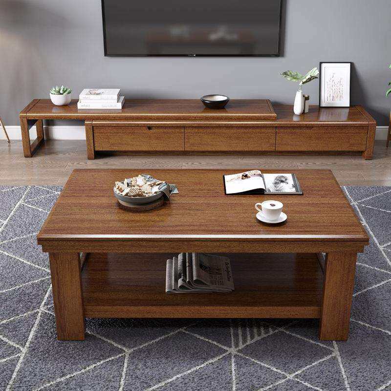 现代新中式实木电视柜茶几组合小户型长方形茶桌伸缩家用客厅家具
