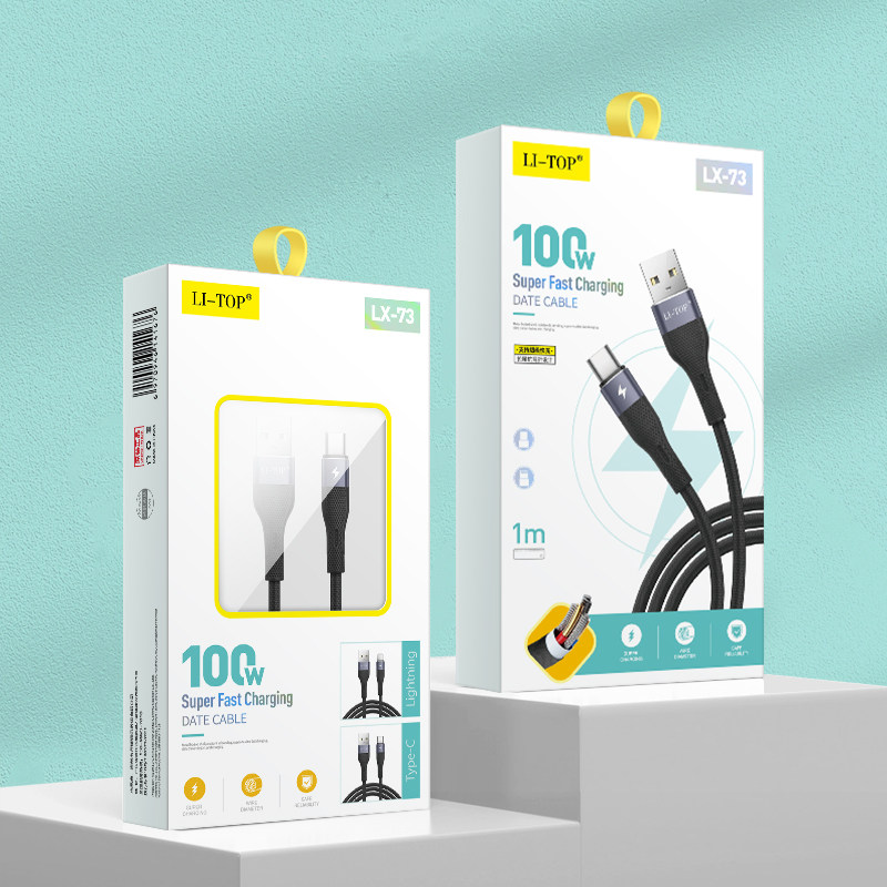 力拓100W繁星高品质金属合金LX73纯铜超级快充闪充抗弯折适用vivo小米iphone手机充电线type-C盒装数据线批发