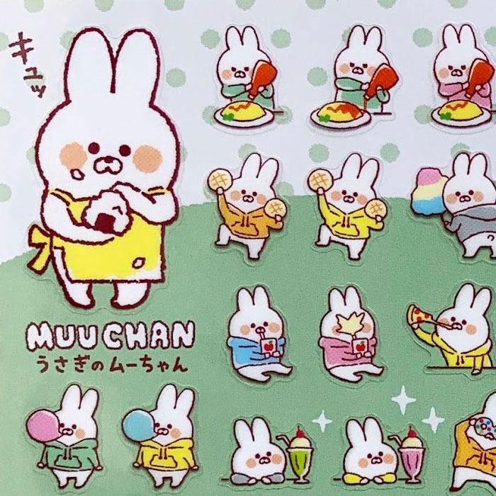 蘑菇屯 日本进口 Mind Wave可爱兔兔Muu酱馋嘴嘴美食手帐贴纸