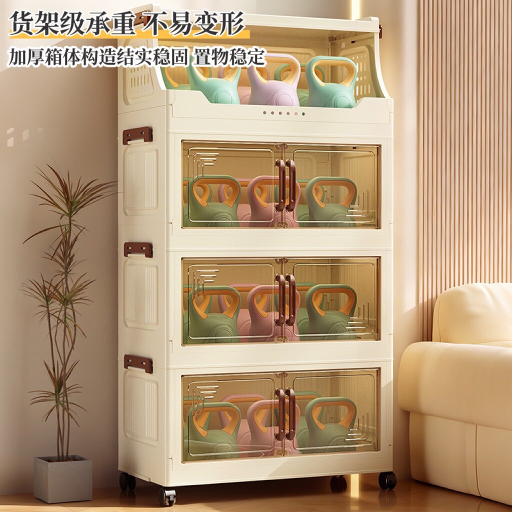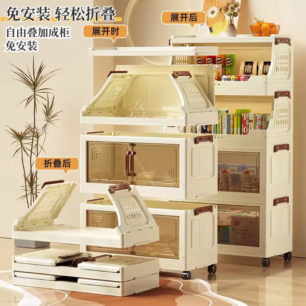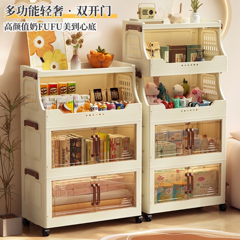 零食收纳置物架客厅落地小推车玩具整理折叠柜子可移动家用储物箱