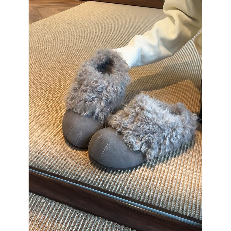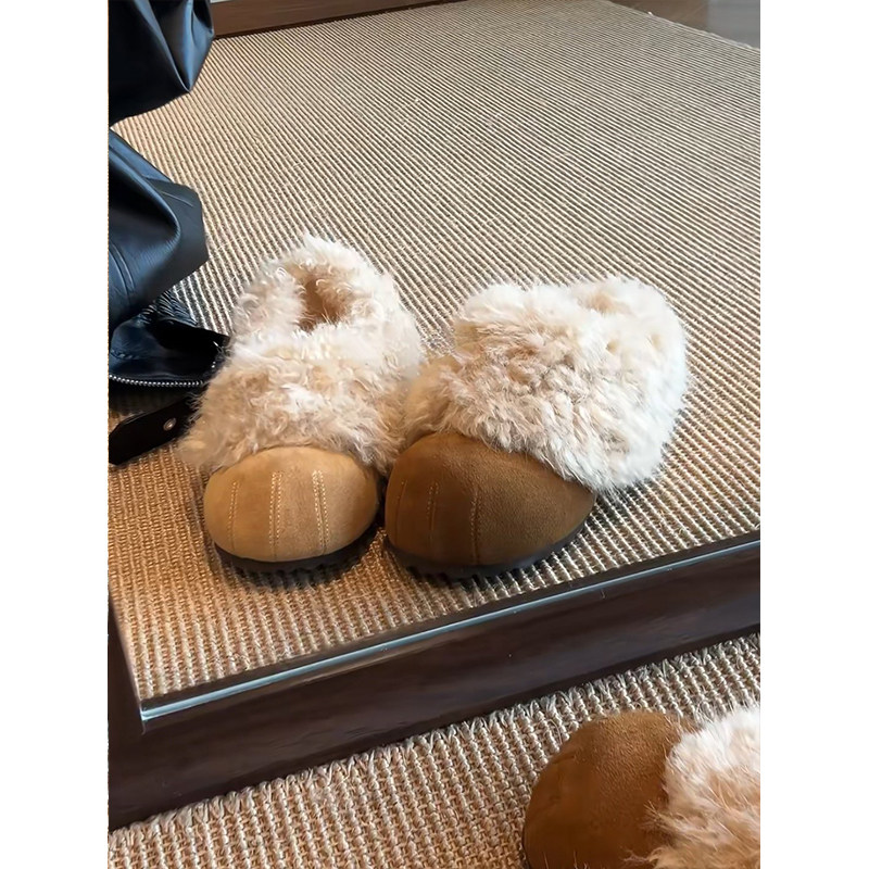 低帮厚底雪地靴女2025新款冬季懒人一脚蹬毛毛棉鞋加绒加厚女鞋子