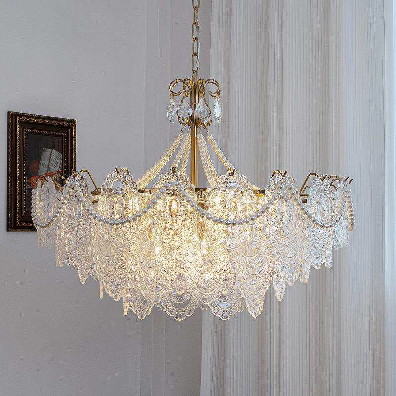 法式宫廷轻奢客厅吊灯珍珠玻璃卧室灯复古餐厅灯大美式网红吊灯
