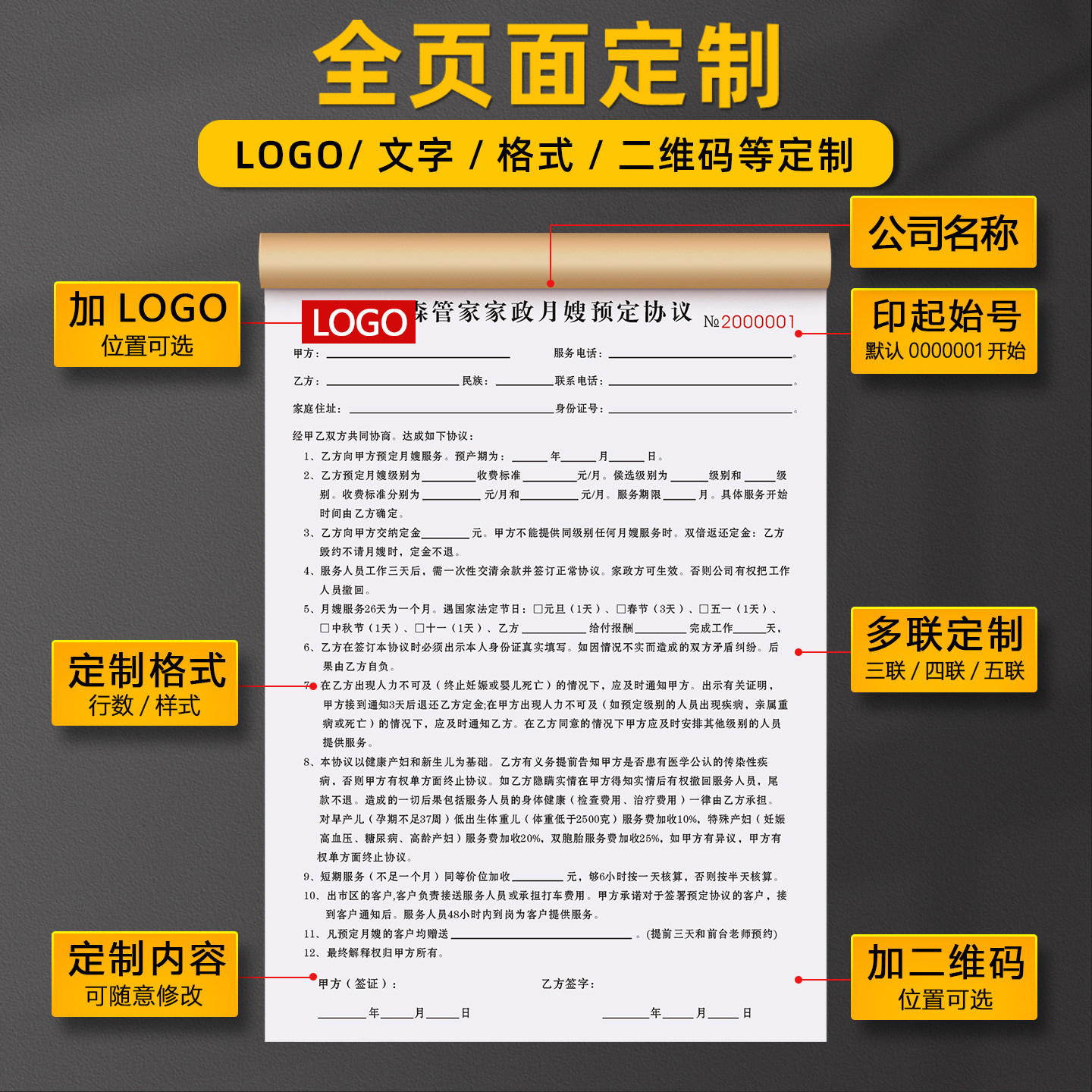 【月嫂服务合同】母婴育婴师定雇佣协议护理工上门保洁验收单据