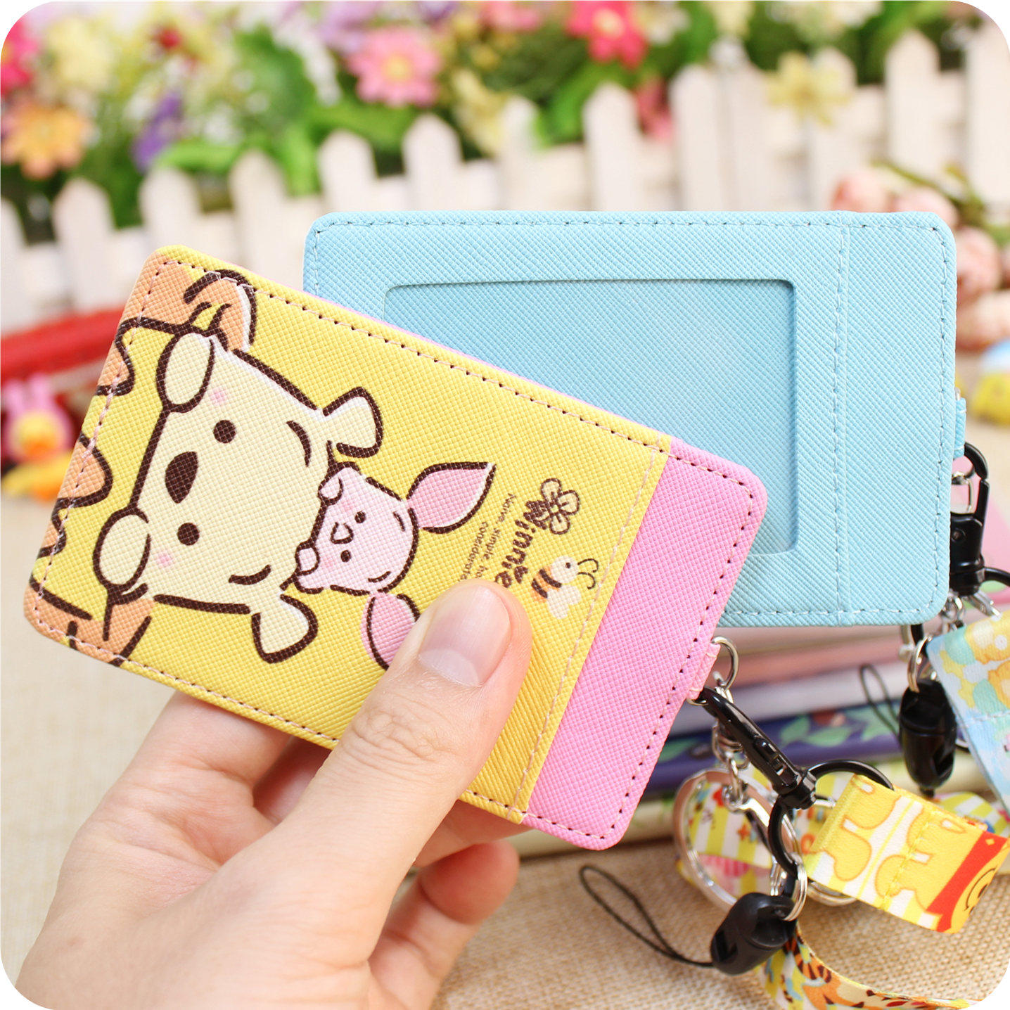 ins卡通卡套带挂绳交通公交卡 学生校园PU饭卡行李牌多功能证件套