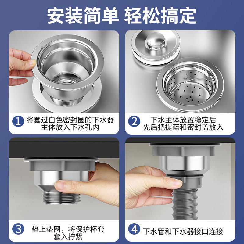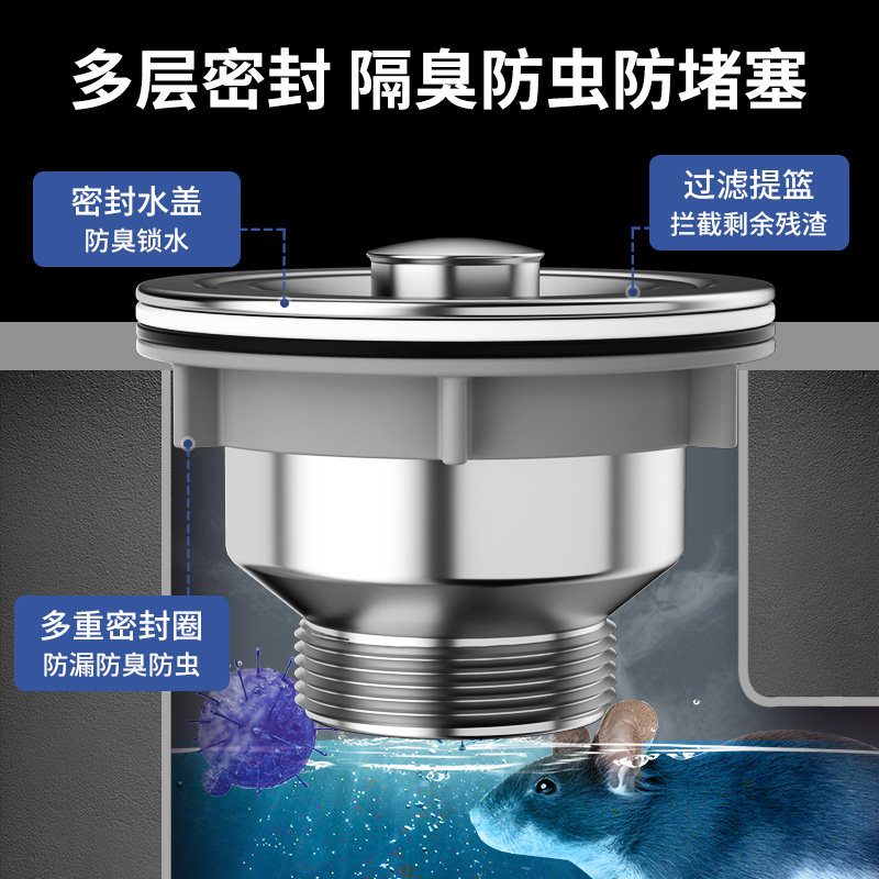 不锈钢水槽老款下水器洗菜盆厨房110下水头提篮老式水池过滤配件