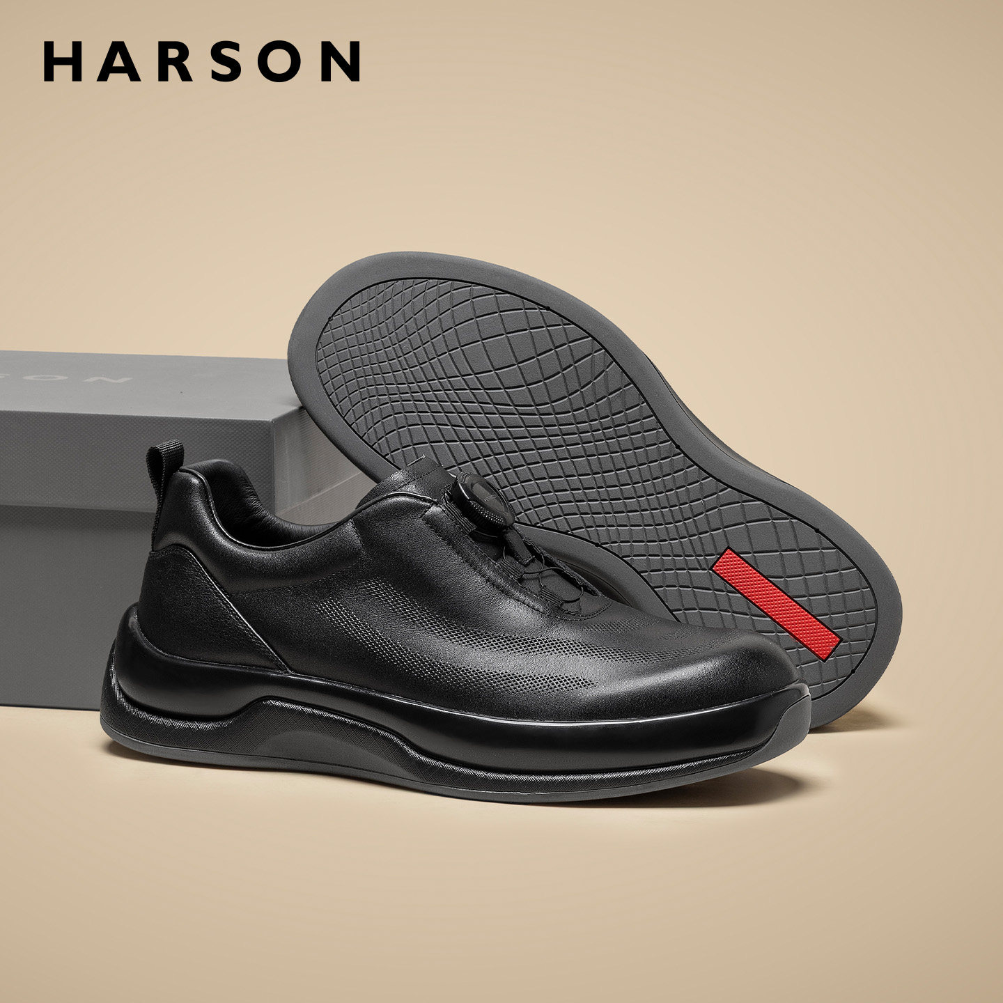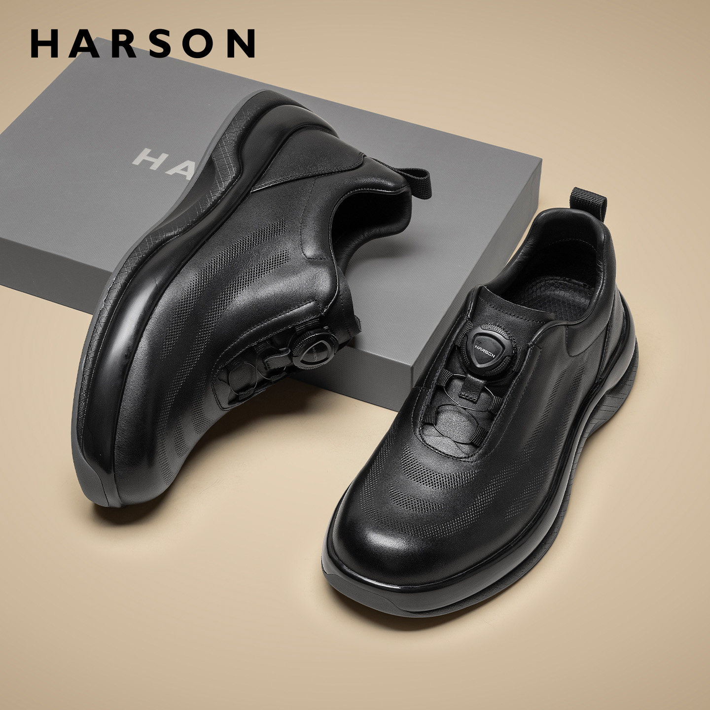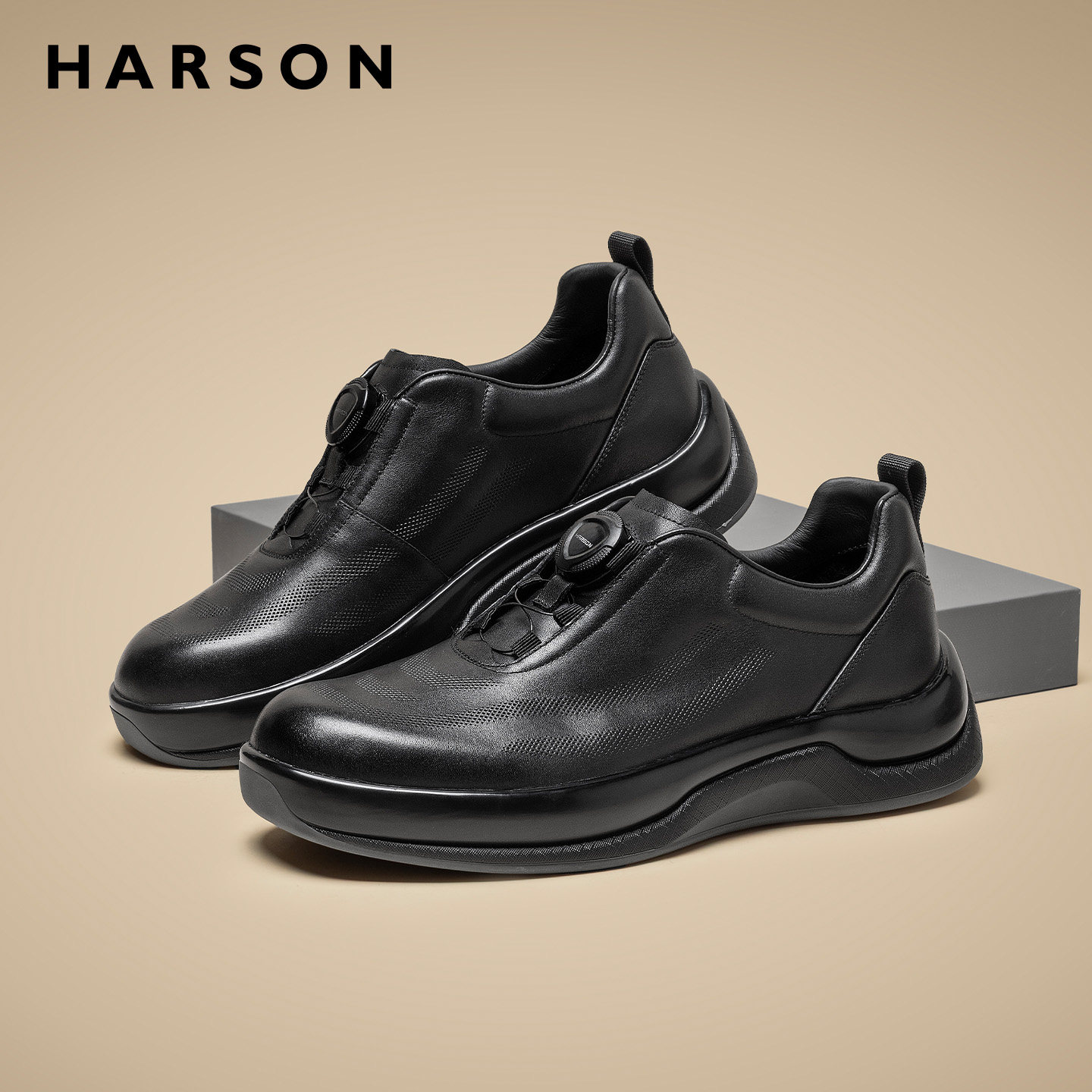 哈森男鞋春季新款商务休闲鞋真皮高级感宽脚皮鞋男士黑色通勤鞋子