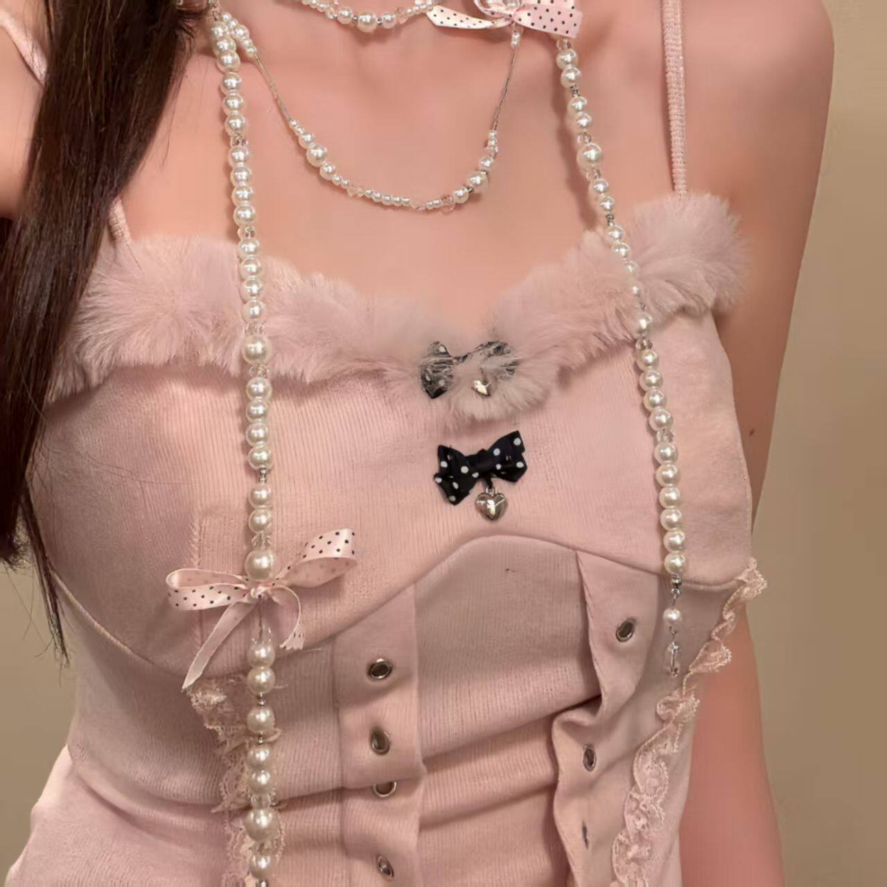 在逃公主甜美小香波点蝴蝶结串珠项链长款多层叠戴毛衣链配饰颈链