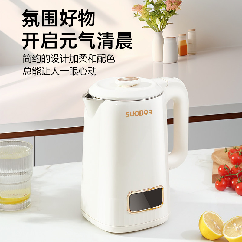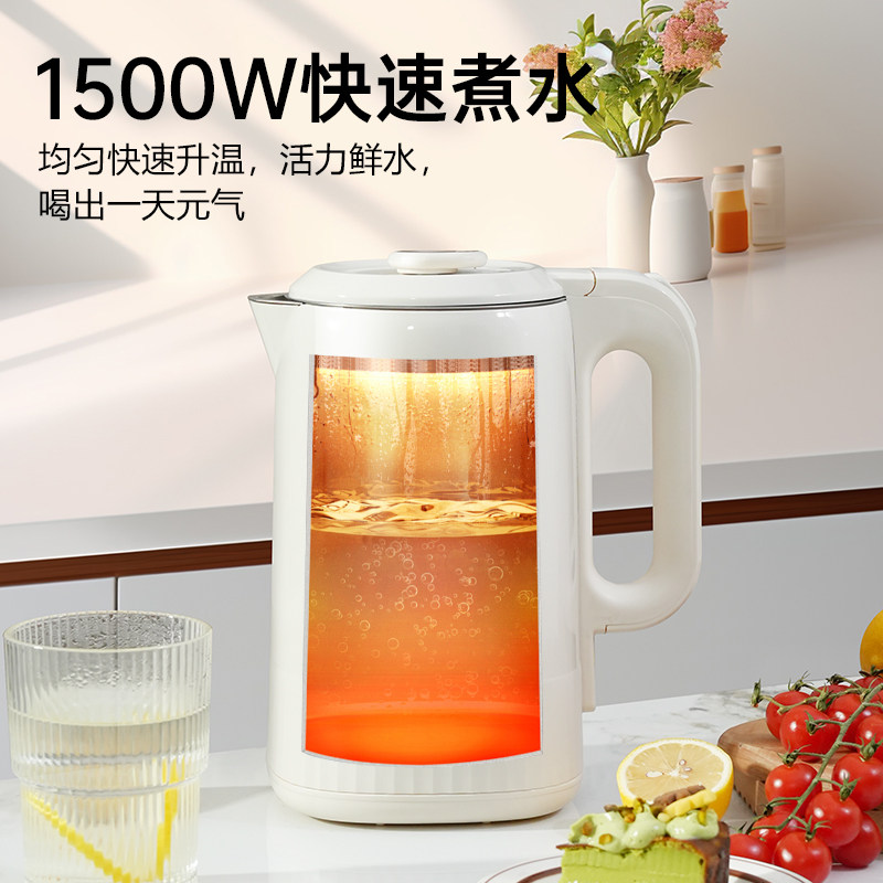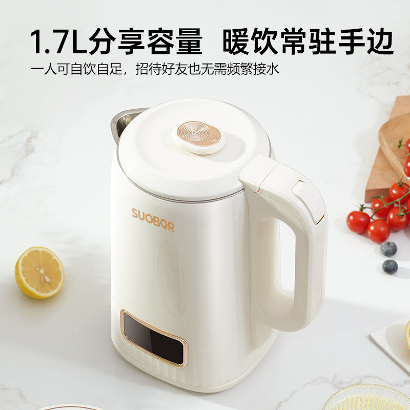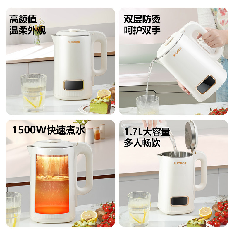 苏泊1.7L电热水壶自动断电双层防烫大容量304不锈钢速热家用保温
