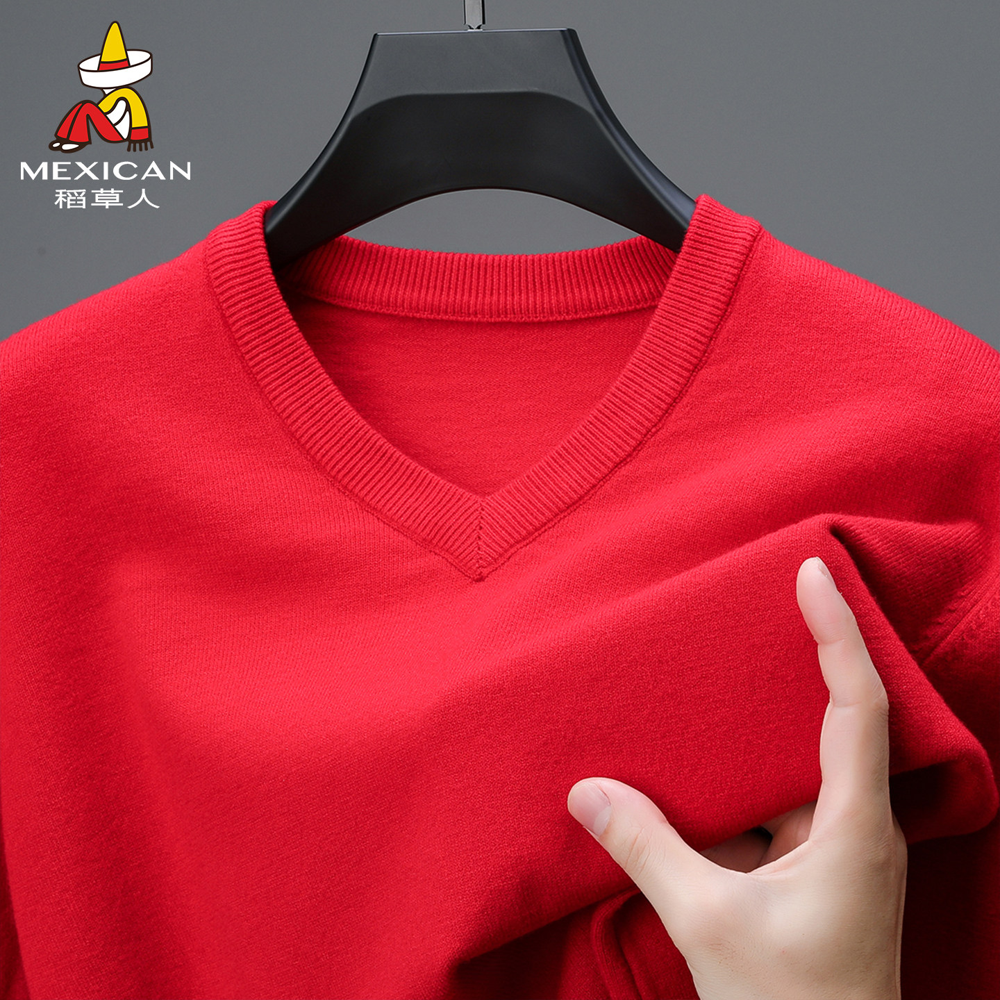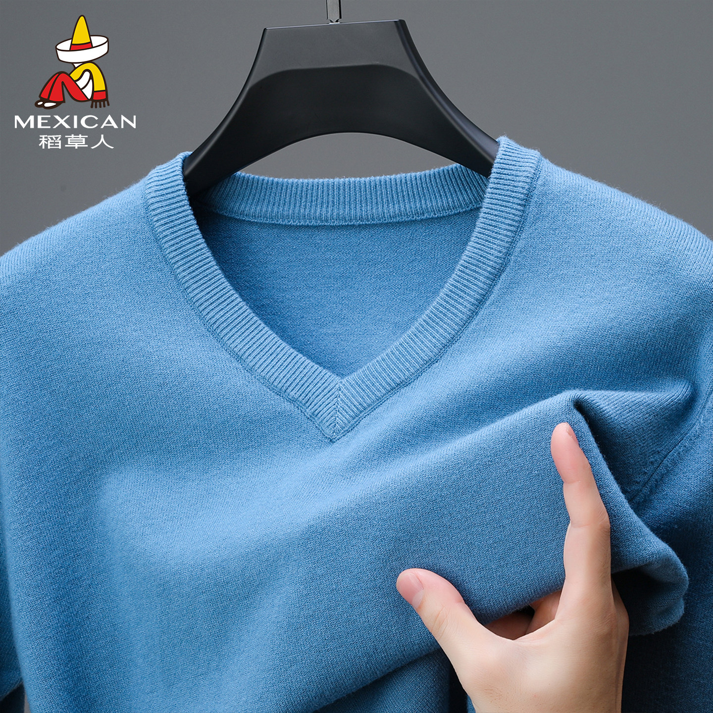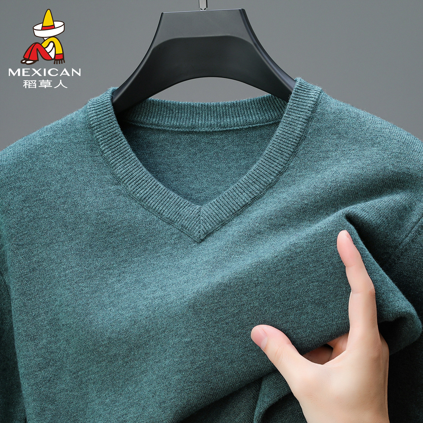 稻草人莱赛尔2025秋冬新款绵羊毛衫男V领薄款毛衣宽松针织打底衫J