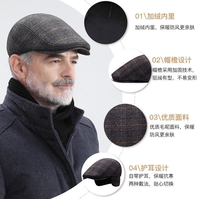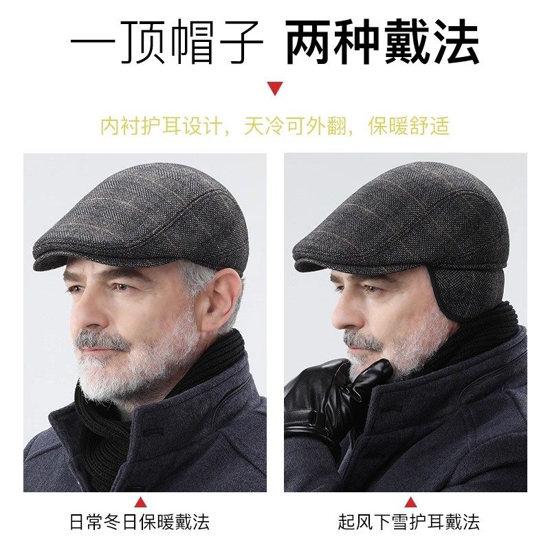 春秋老人帽子男士冬季中老年人爸爸爷爷贝雷帽冬天老头保暖鸭舌帽