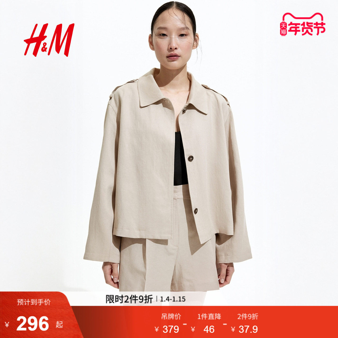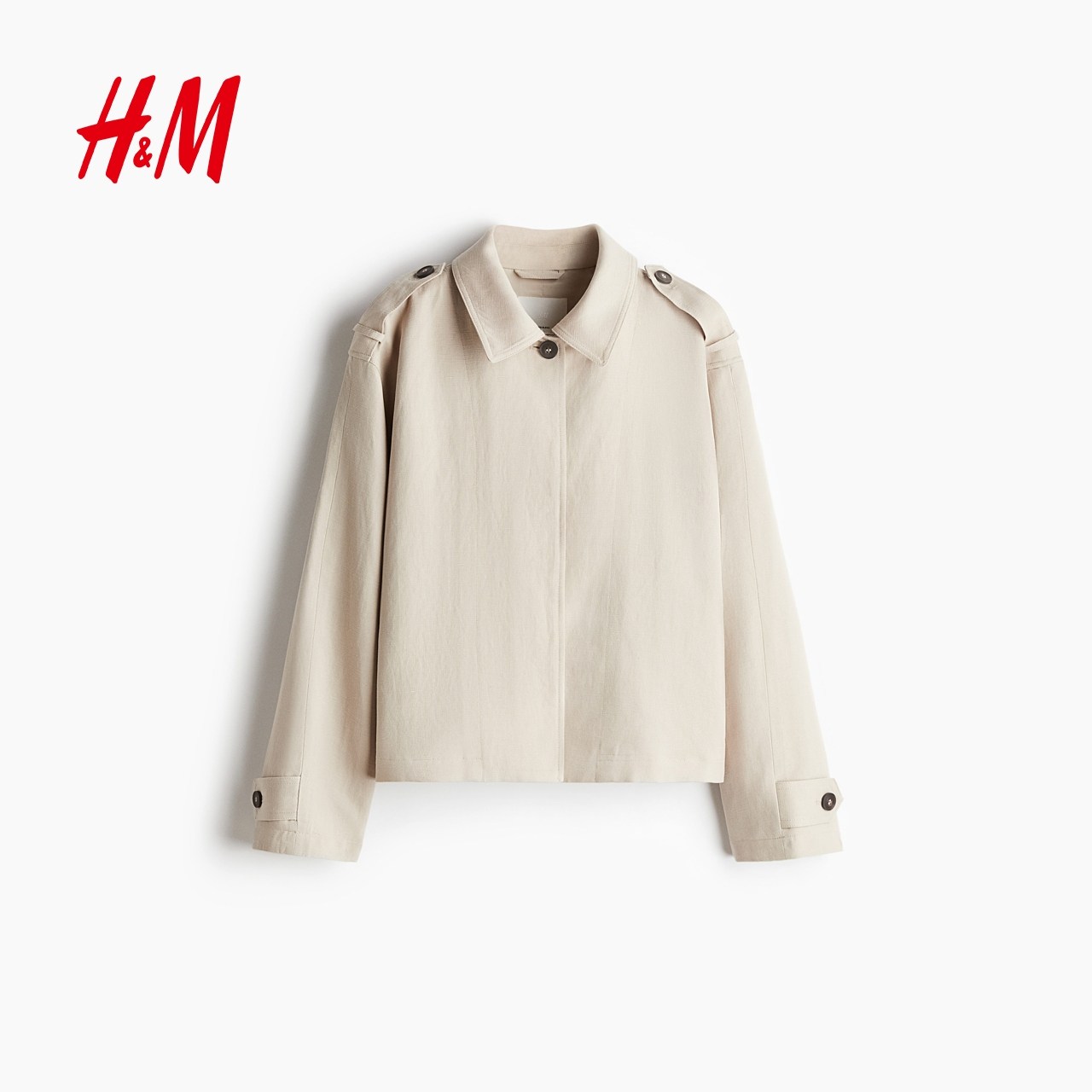 HM短外套冬季时尚女装亚麻混纺大廓形外套1262912