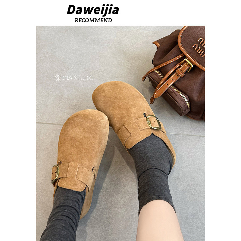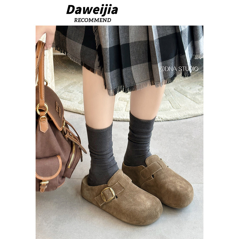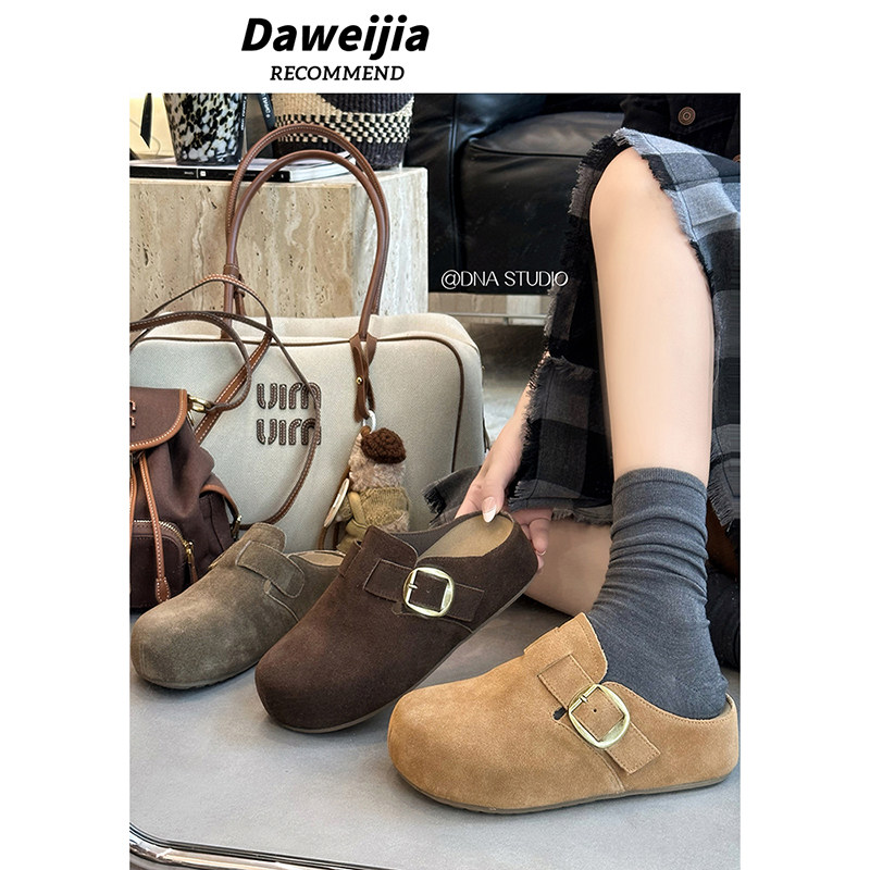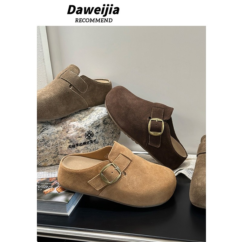 真皮包头拖秋季2025年新款勃肯鞋圆头拖鞋平底外穿休闲半拖懒人鞋
