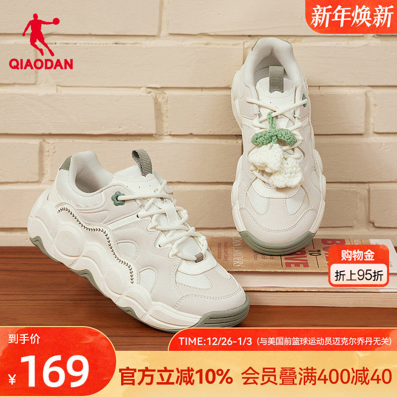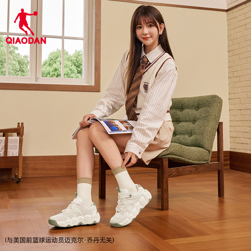 乔丹小千禧皮面防水休闲鞋女2025新款加绒保暖老爹鞋学生运动鞋子
