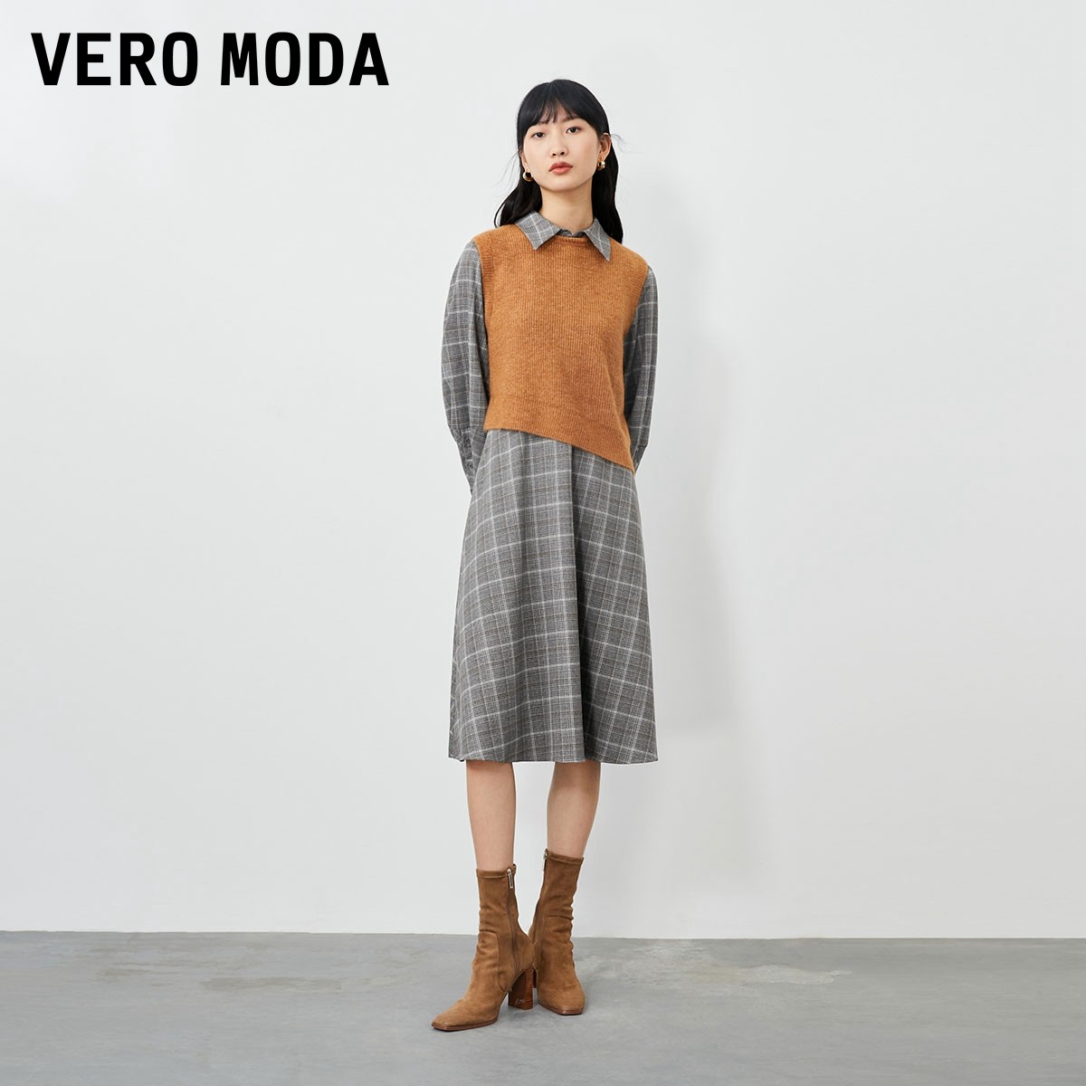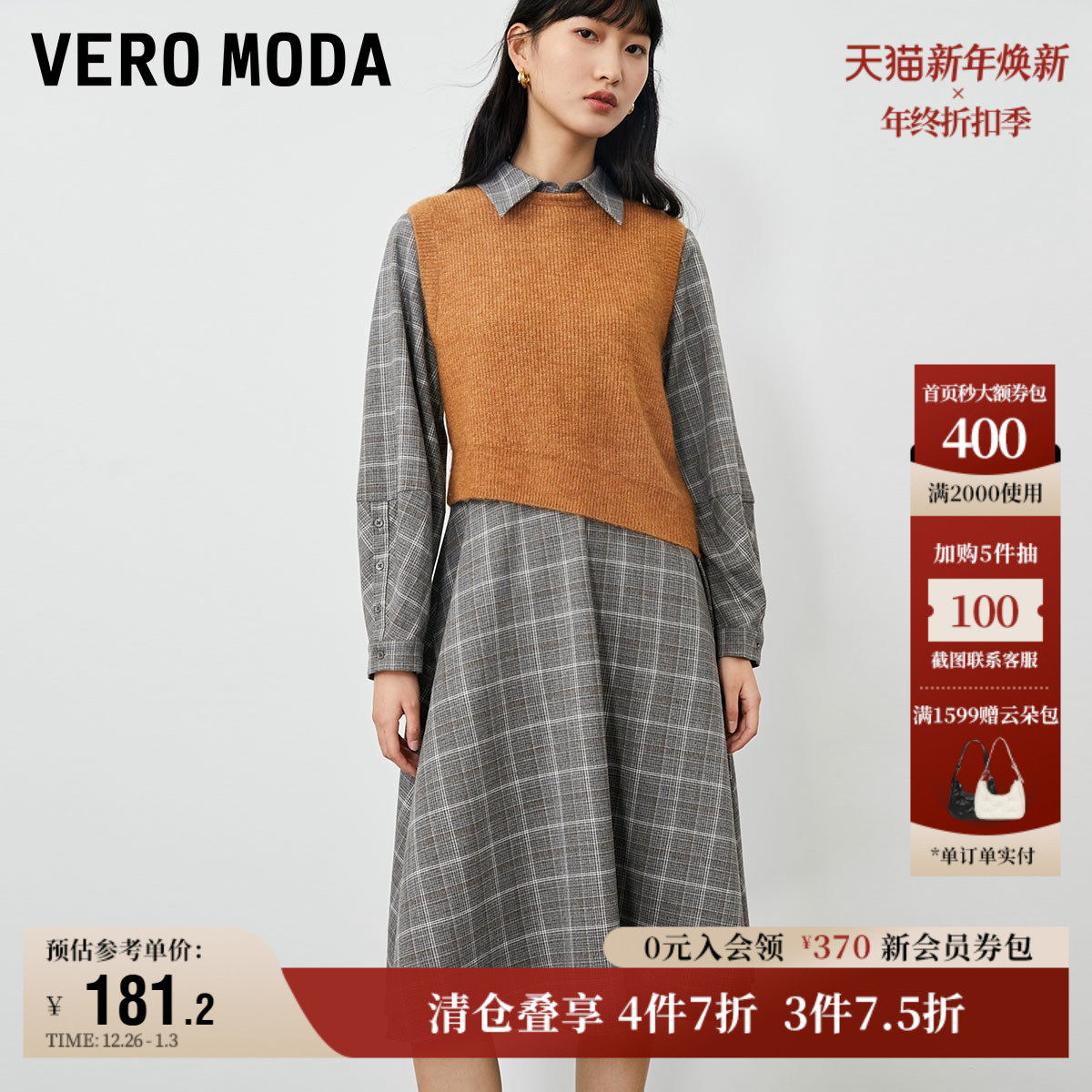 Vero Moda奥莱连衣裙秋季清仓衬衫式裙子针织马甲两件套通勤女