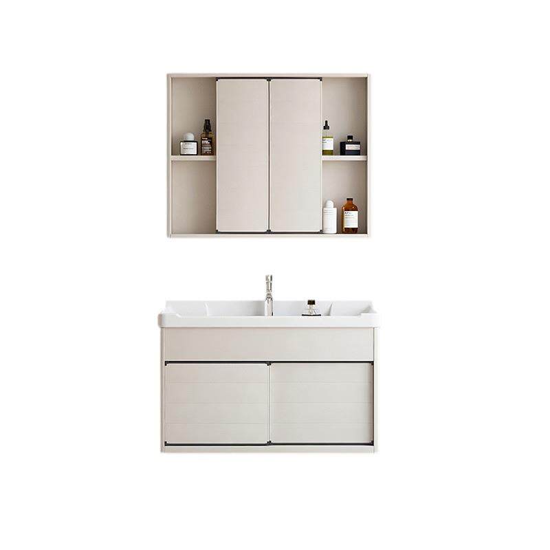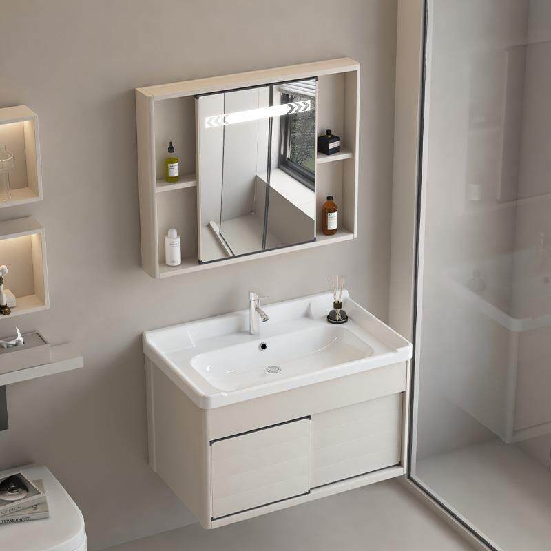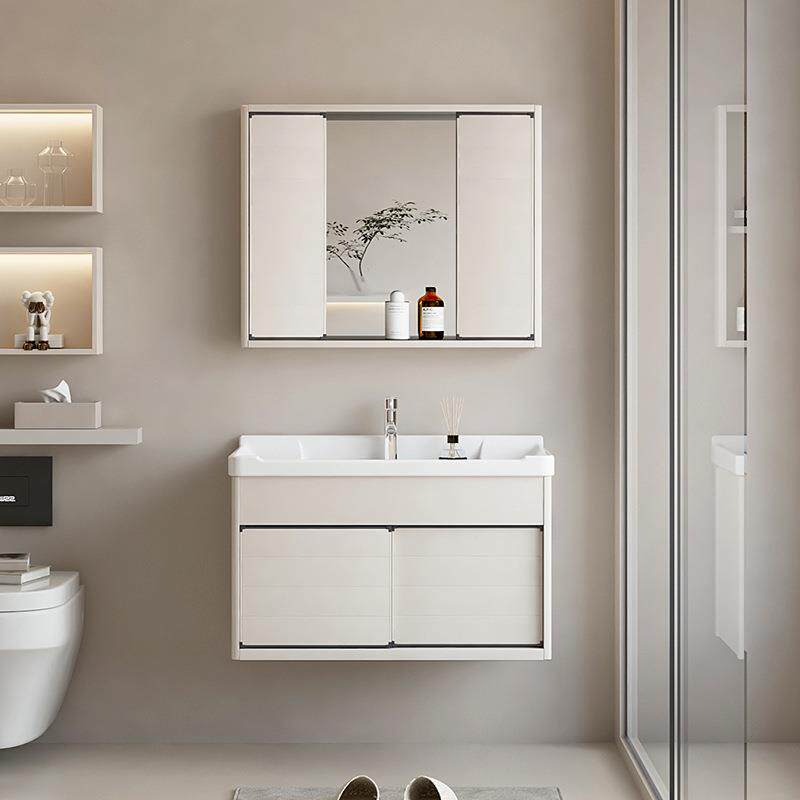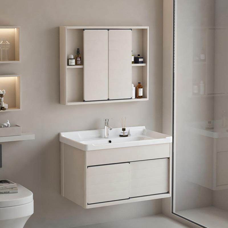风水镜浴室柜太空铝加厚一体陶瓷盆隐藏式奶油风推拉铝合金洗漱台