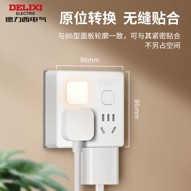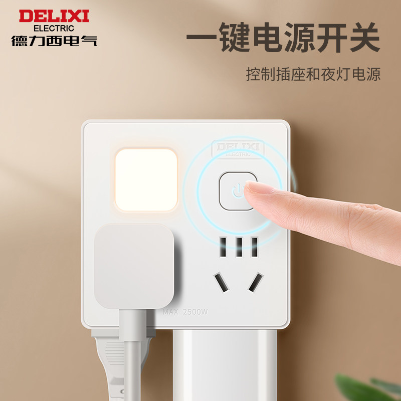 公正午纯铜插座无线转换器夜灯USB独立开关多功能一转多位排插板