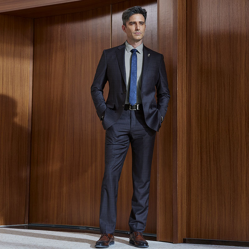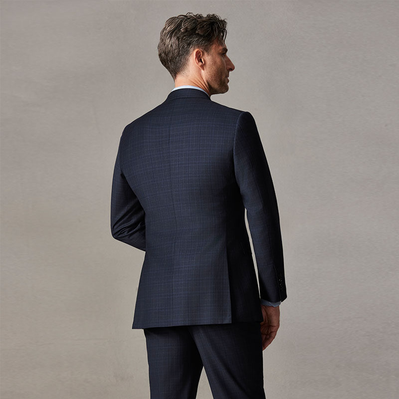 欧定头等舱西装男套装新款海克利尔蓝调格纹羊毛高级定制商务西服