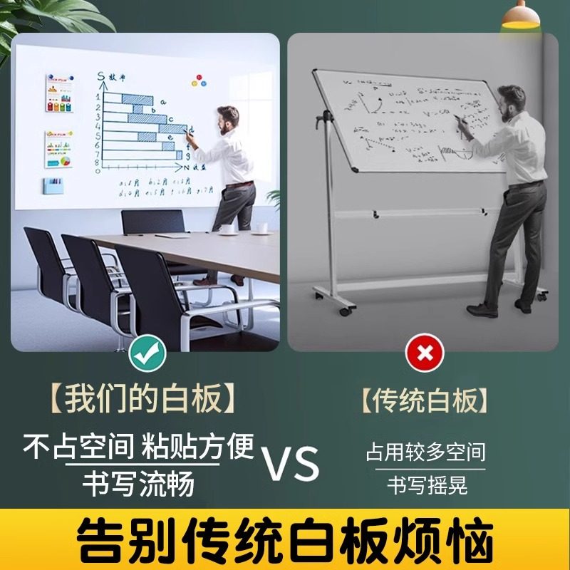 白板写字板墙贴办公黑板磁性可移除不伤墙儿童教学墙上写办公室墙膜学习家用教学培训书写会议板磁力贴照片墙