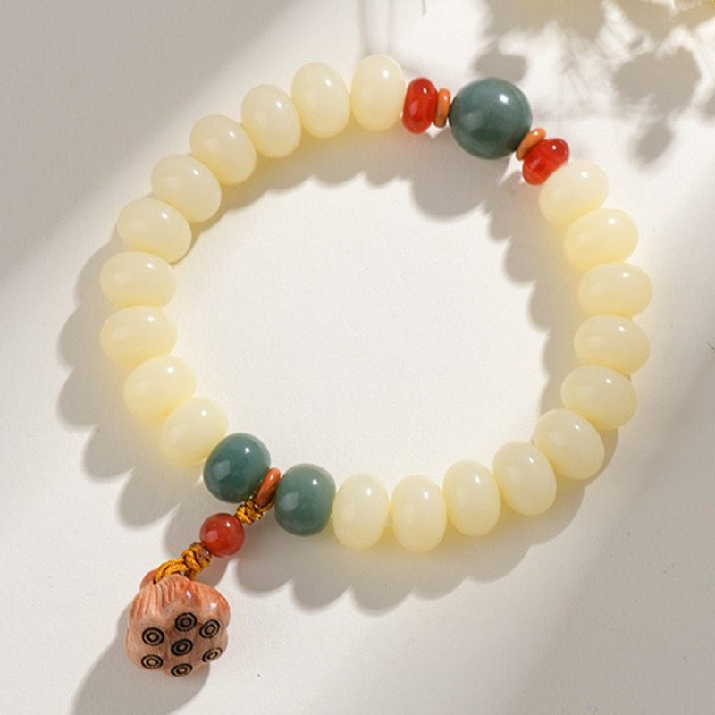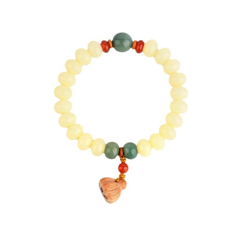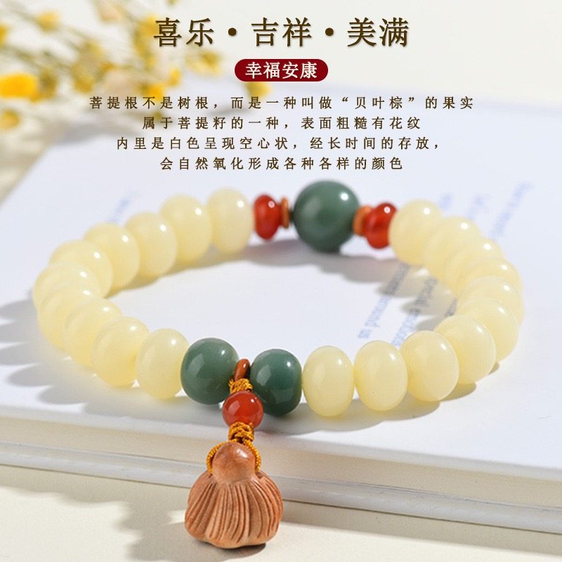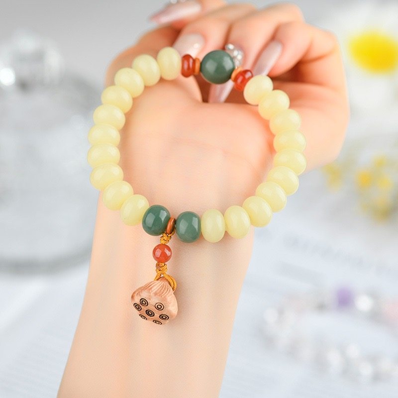 VZZS奶油黄玉化菩提根苹果珠单圈手链新中式佛珠文玩男女莲蓬手串