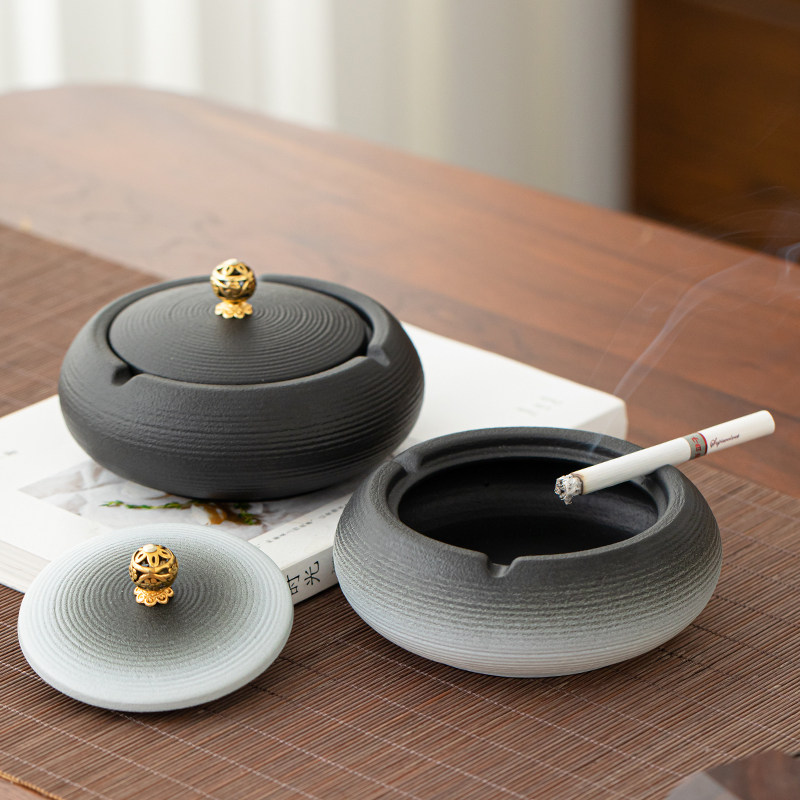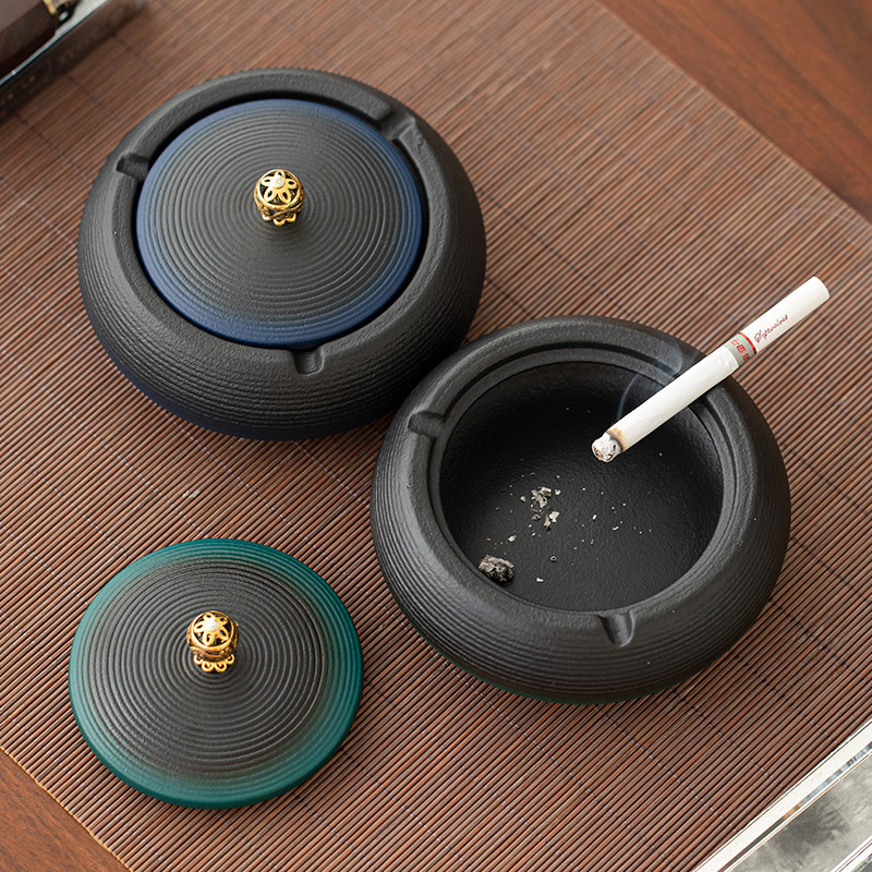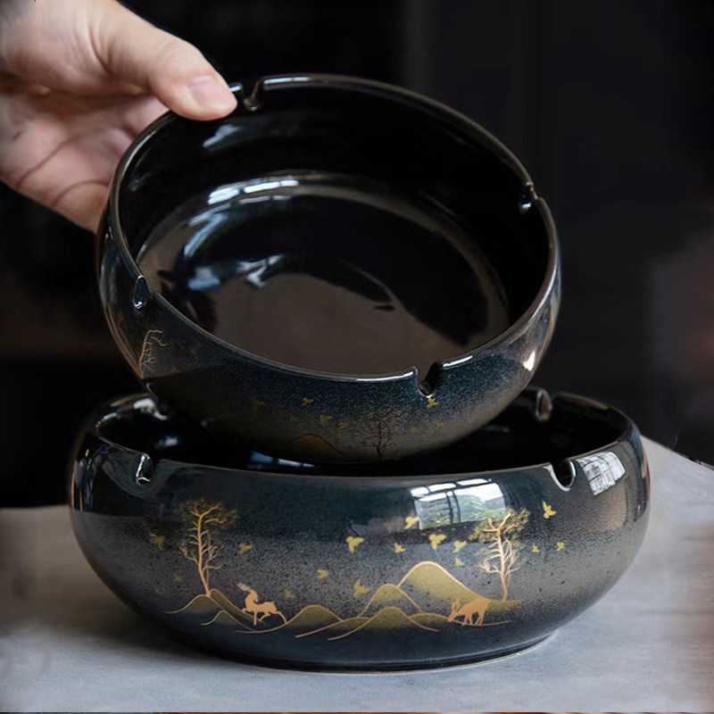 山川鹿创意陶瓷大号烟灰缸办公室高级感轻奢烟缸客厅家用烟盅带盖